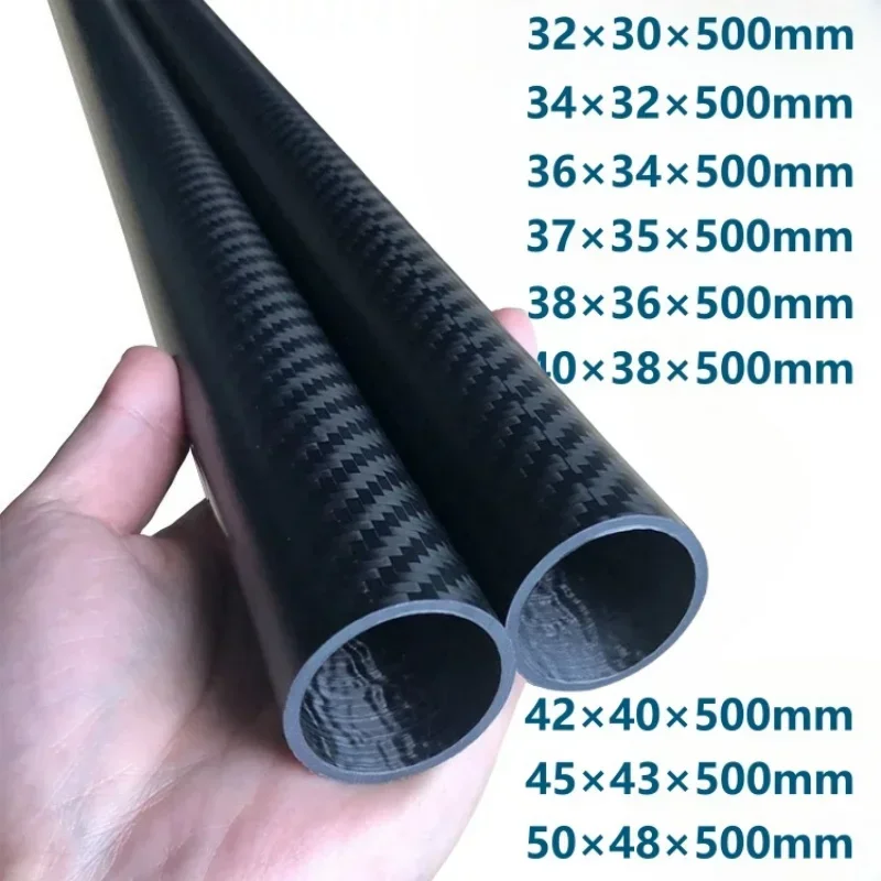 2pcs 500mm length Twill Matte surface 3K Carbon Fiber Fabric Wound Tube OD 30mm 32mm 35mm 40mm 45mm ...