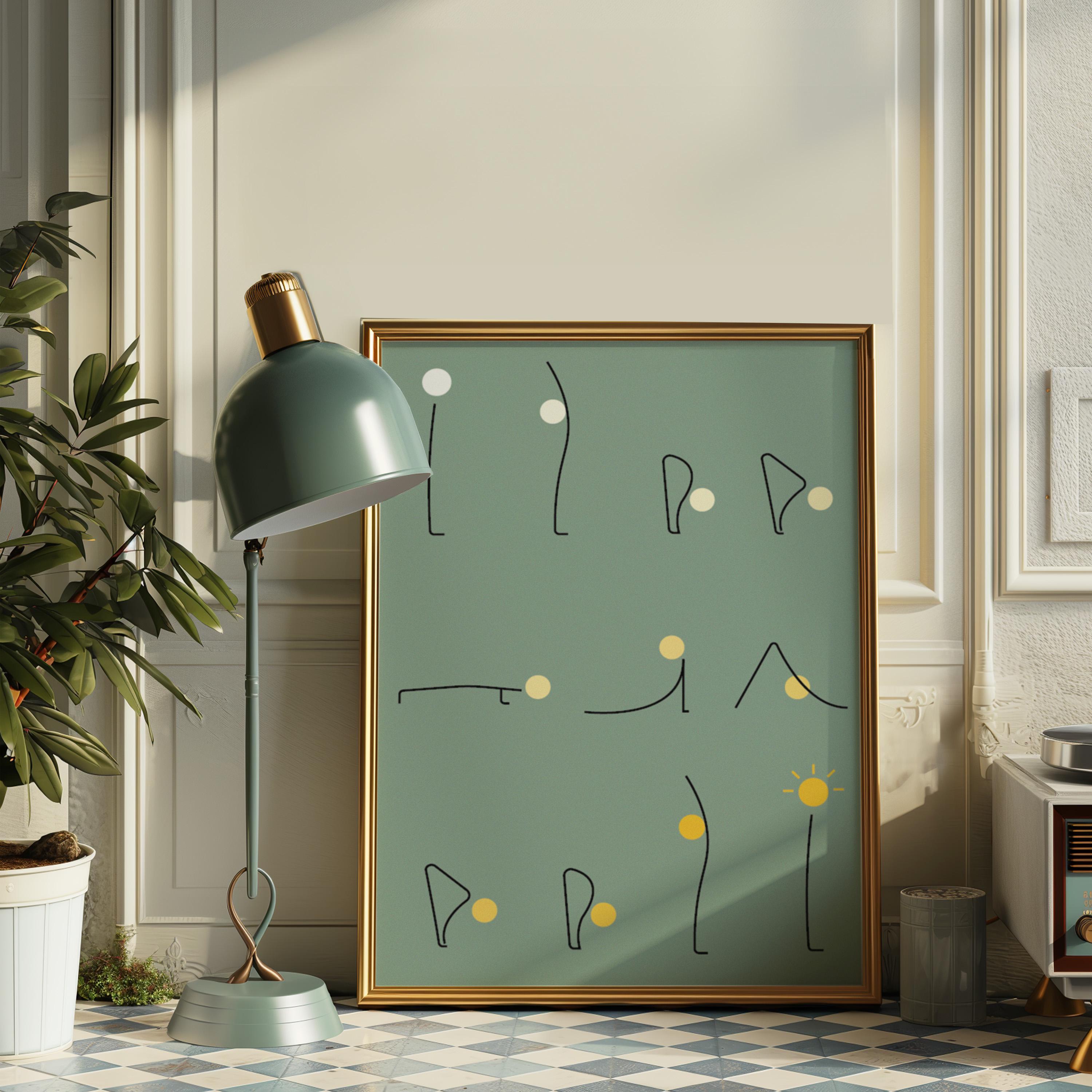 Embrace the process of vinyasa yoga with this poster that shows each of the steps into the sun salut...