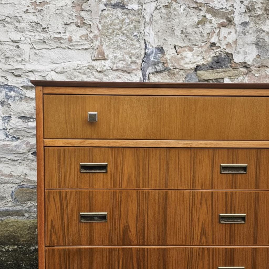 Mid Century Teak Chest of Drawers: Vintage Tallboy Cabinet Four Dra...