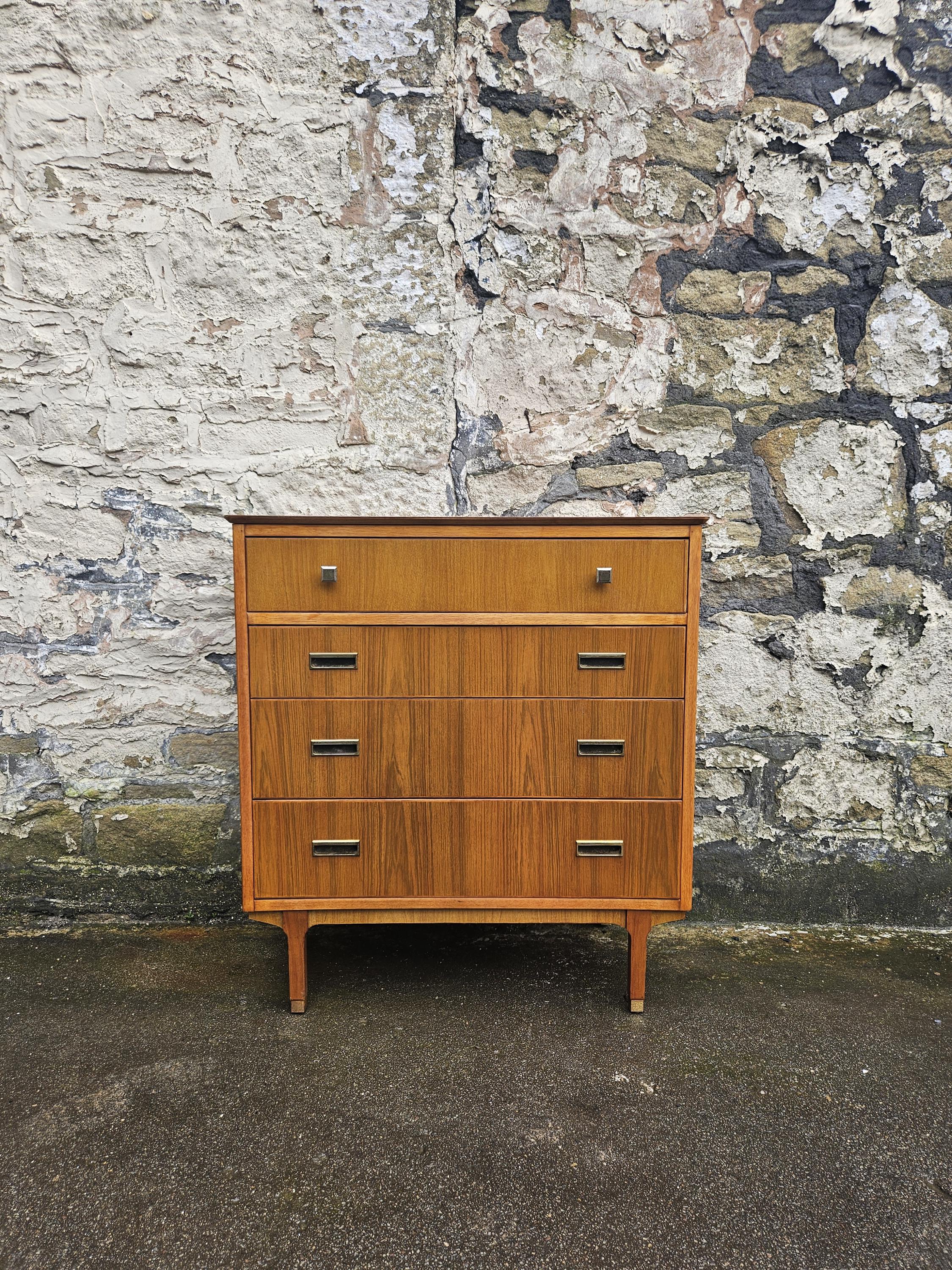 Mid Century Teak Four Drawer Chest - Brass Detailing, Scandinavian ...