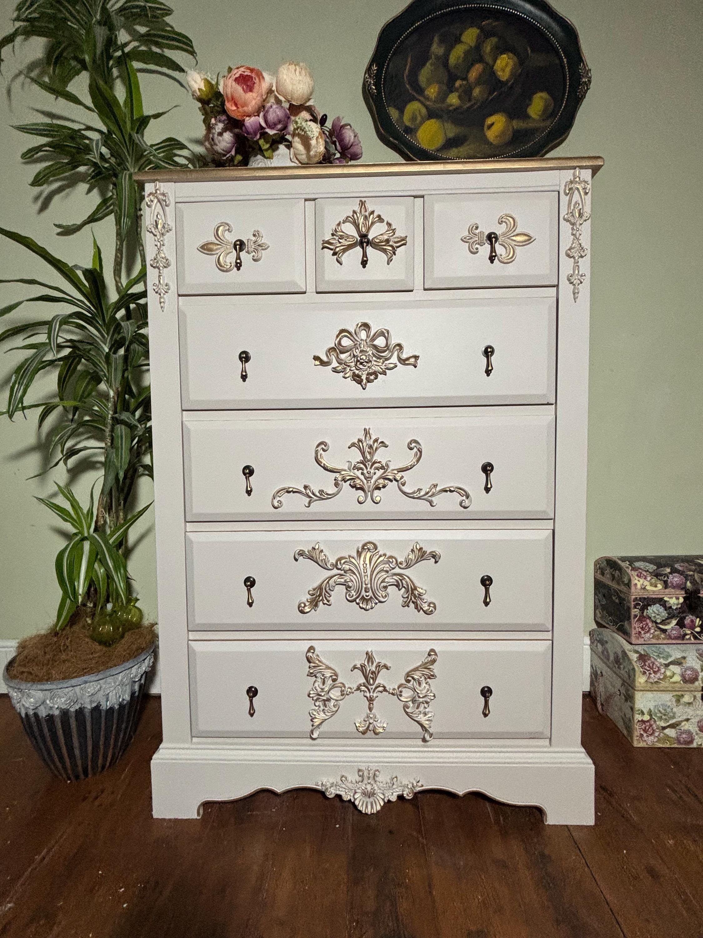 Tall Chest - Elegantly Recycled & Hand-Finished with Gold Baroq...