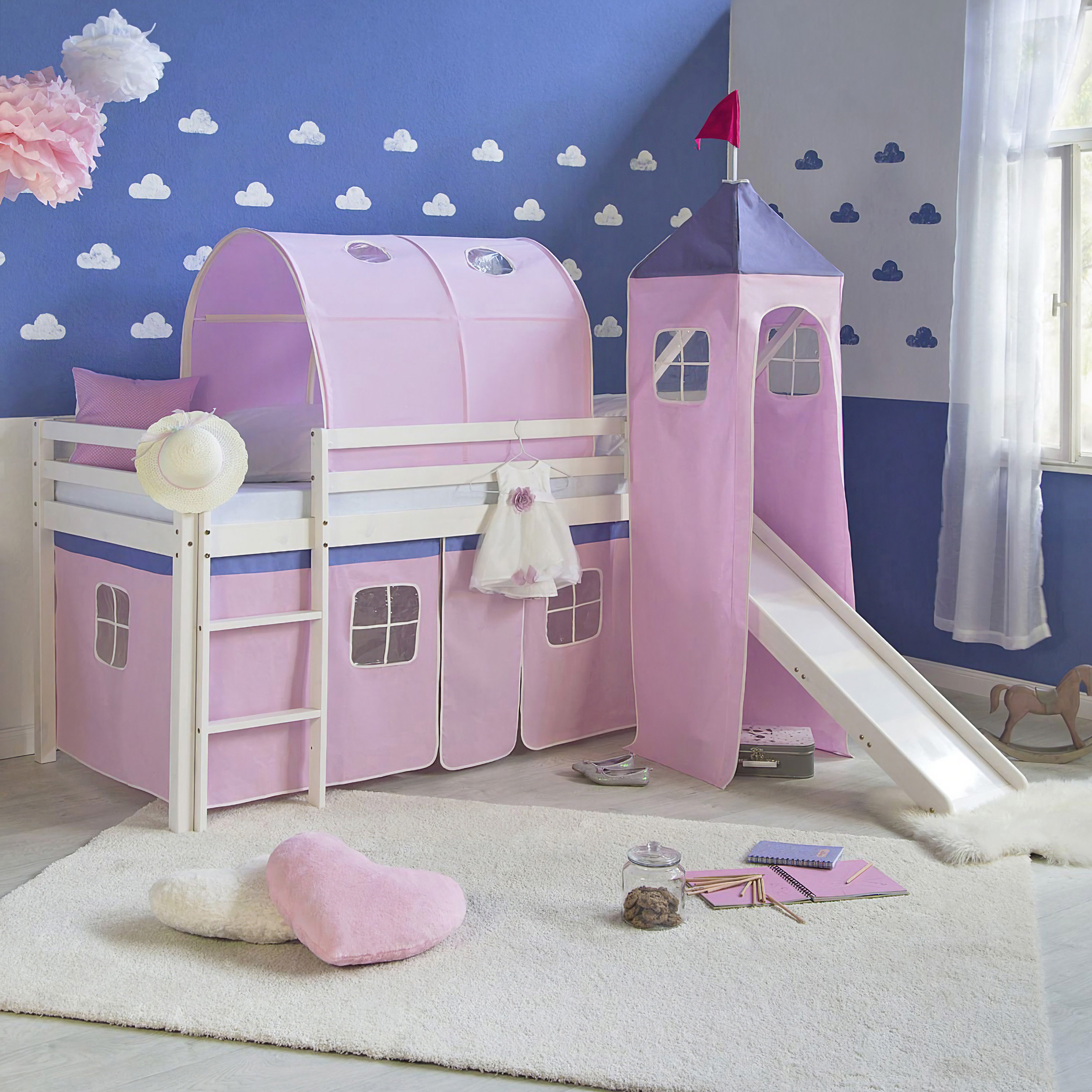 Mezzanine hut bed Montessori bunk slide for girl child pink castle ...