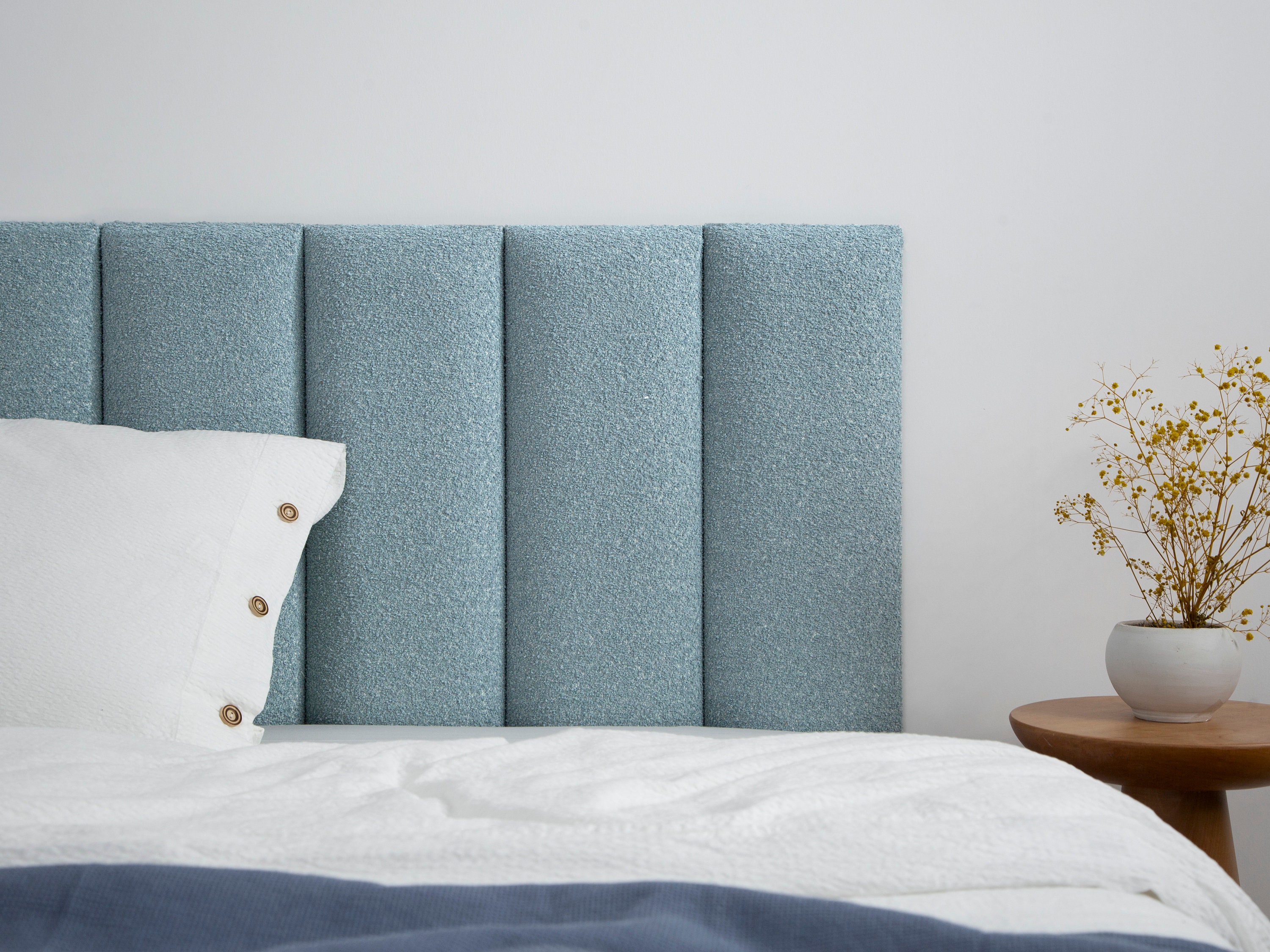 Light Blue Boucle Headboard Panel: Textured Upholstered Wall Mount