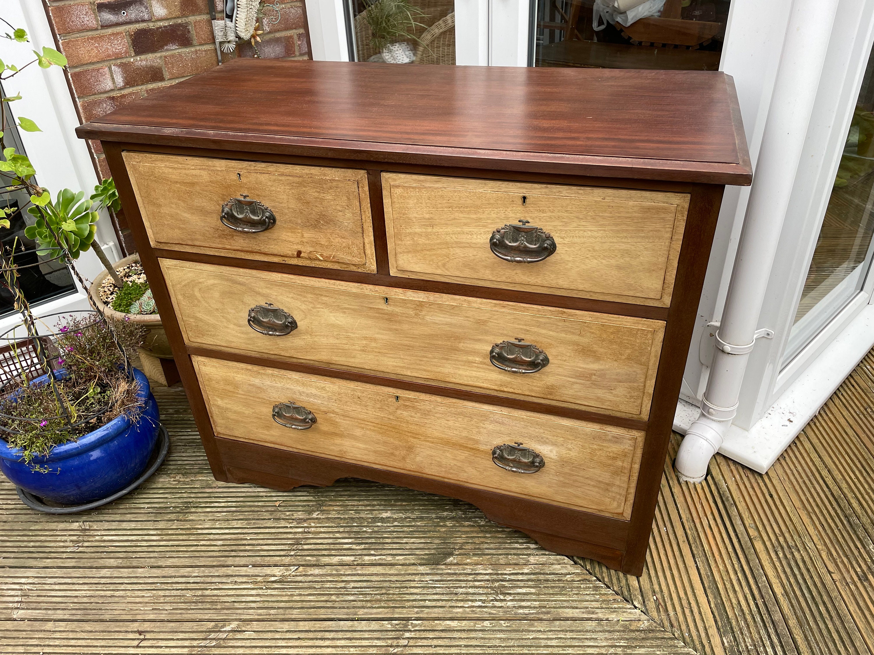 Late Victorian 2over 2 contrast stained chest of drawers