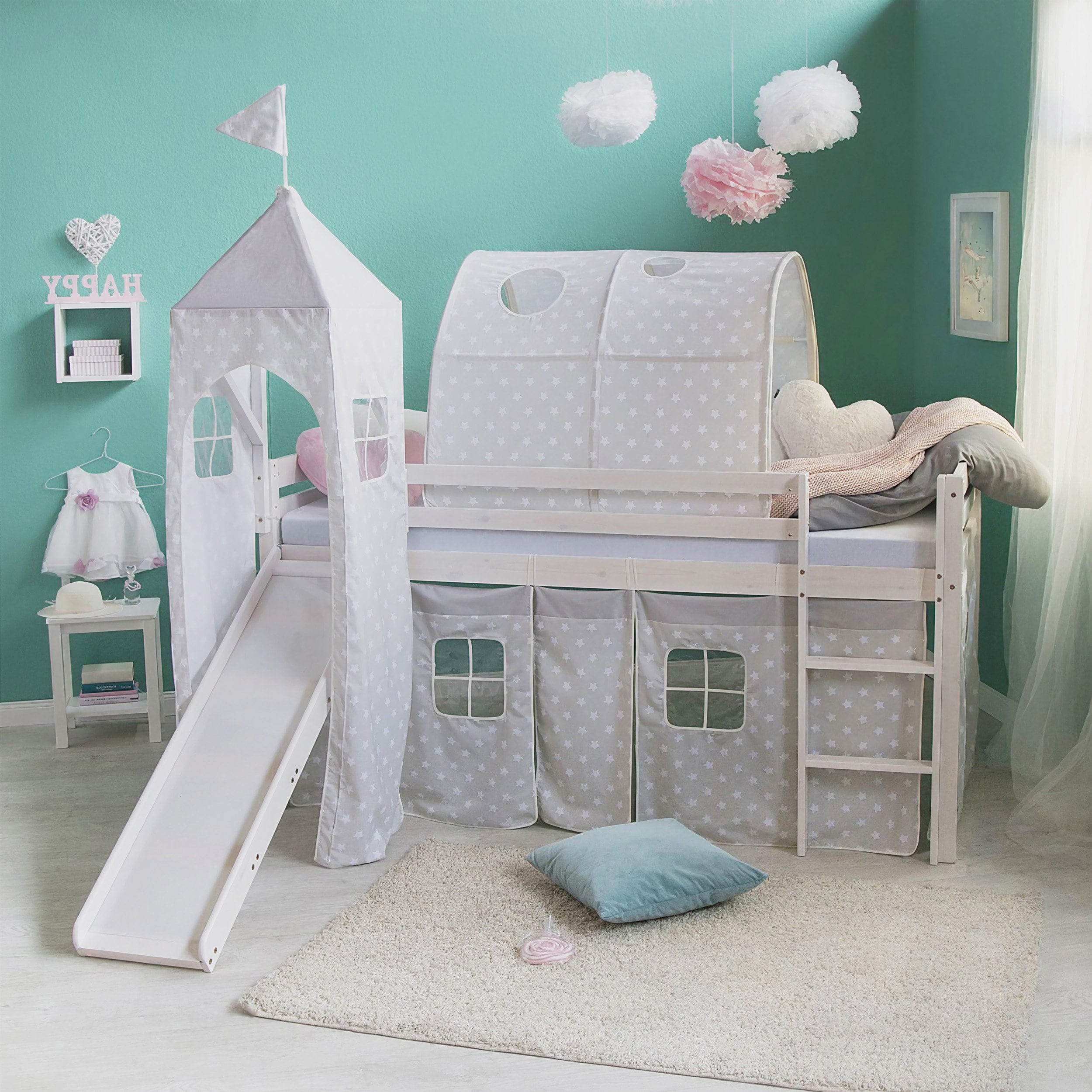 Mezzanine cabin bed slide Montessori bunk for girl boy child white ...