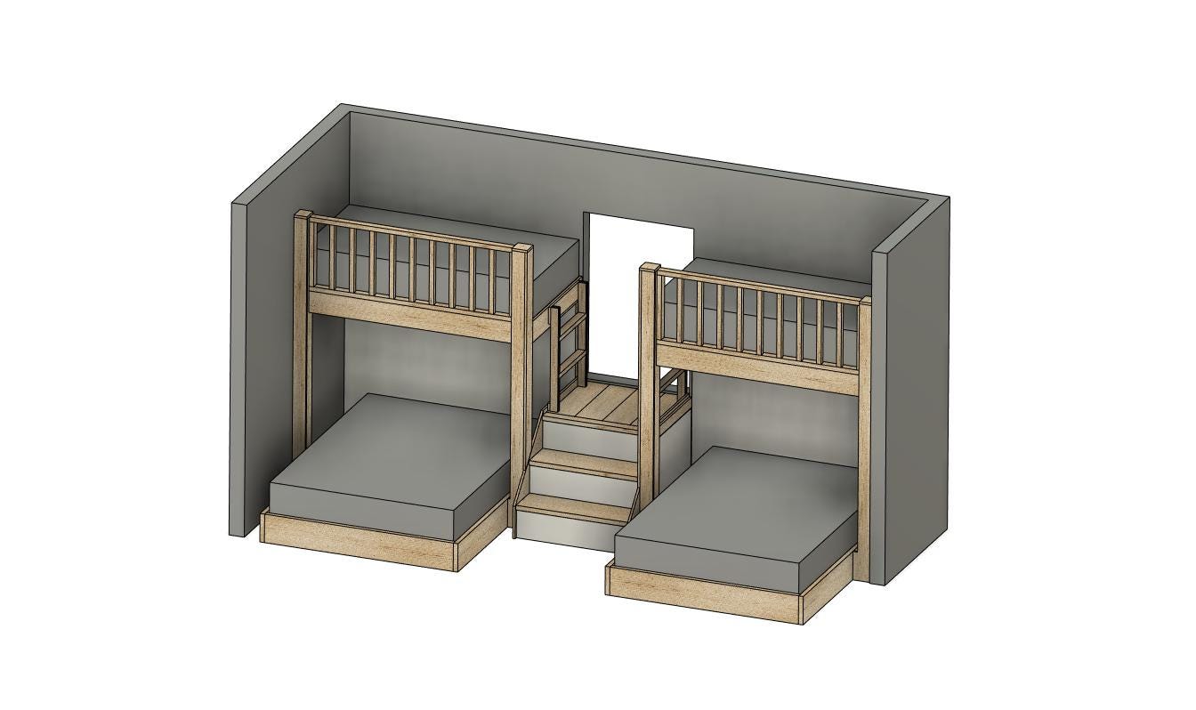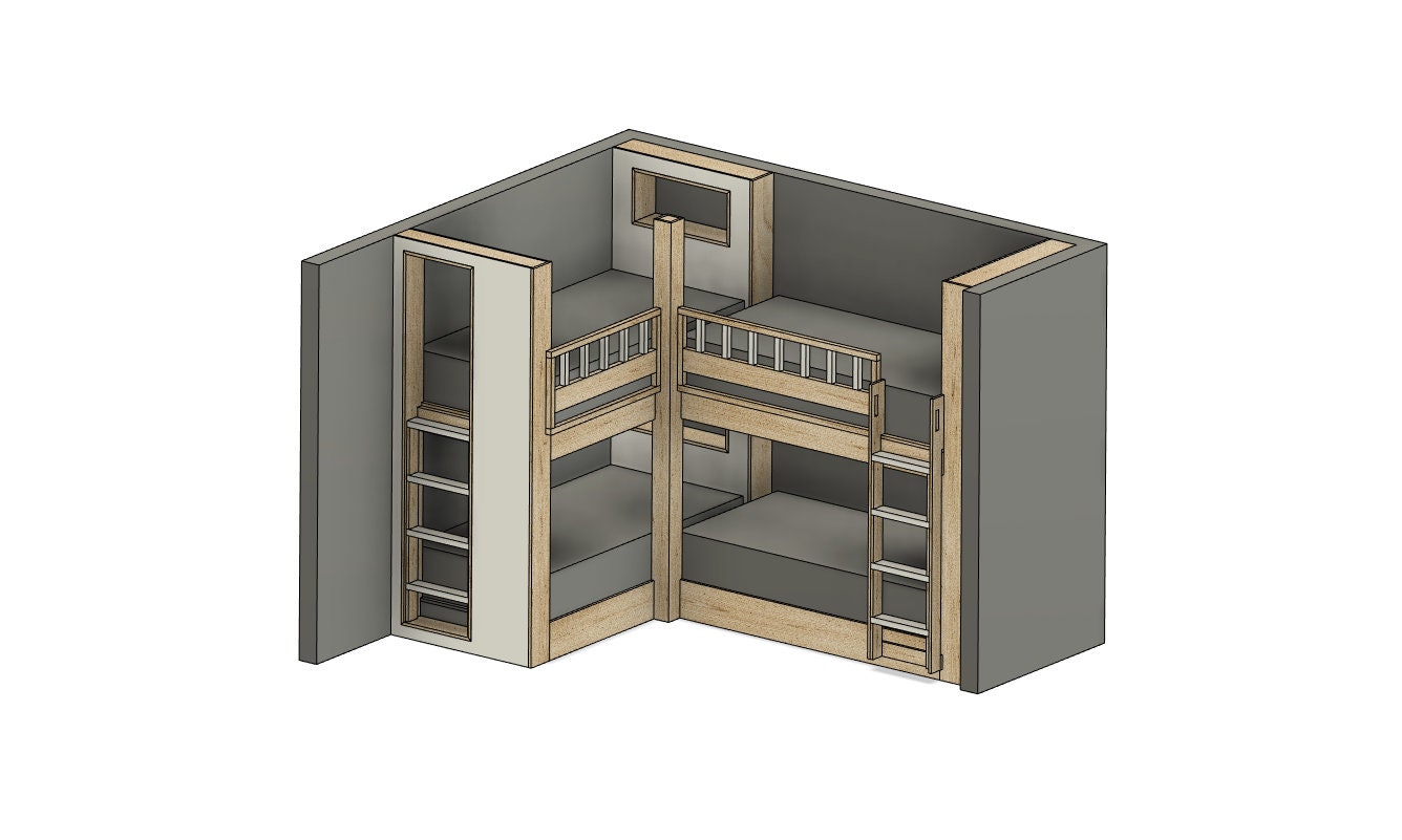 "DIY build plans for corner double bunk bed. Save spacing design for maximum sleepers. All bed ...