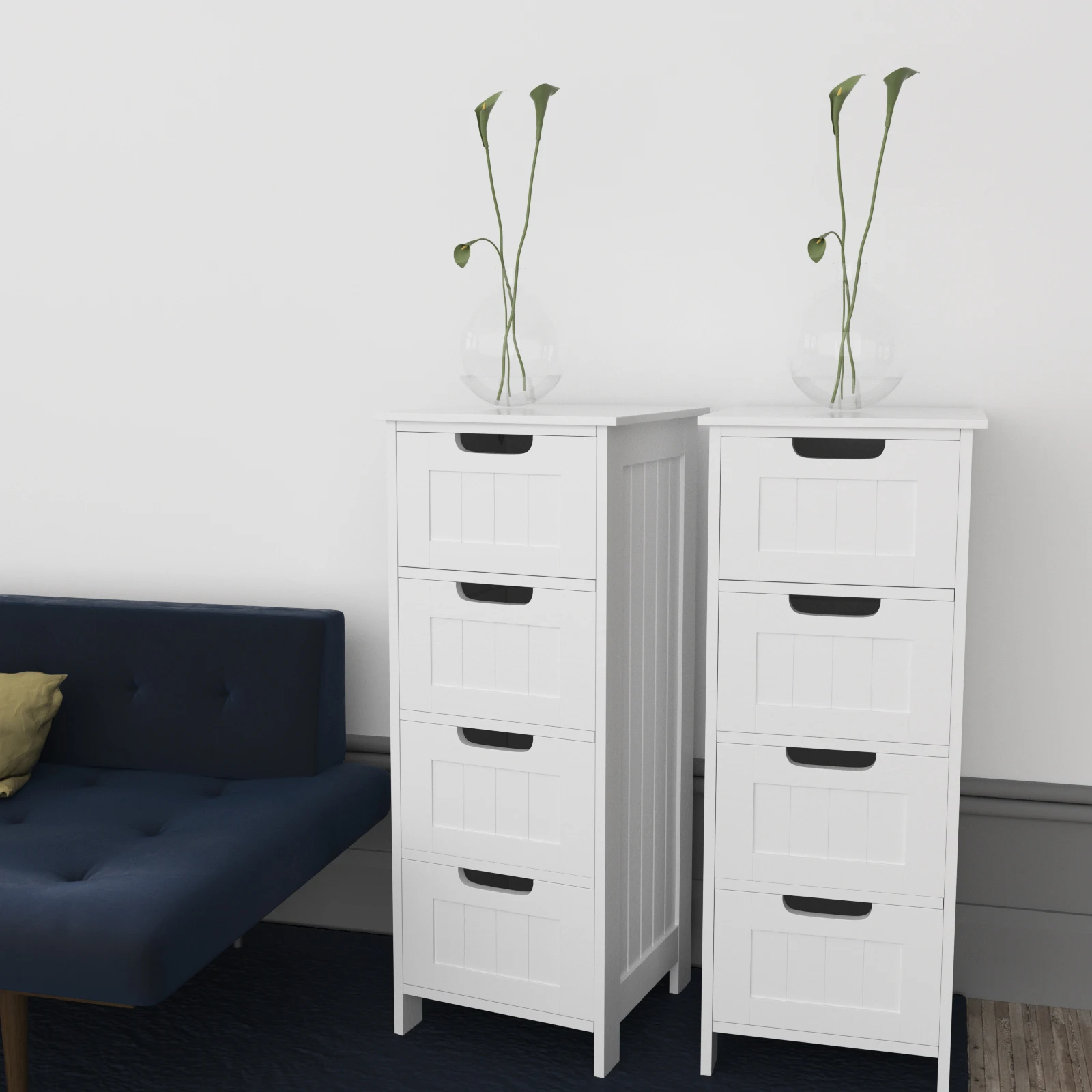 Bathroom Storage Cabinet with 4 Drawers,White Chest of Drawers,Floo...