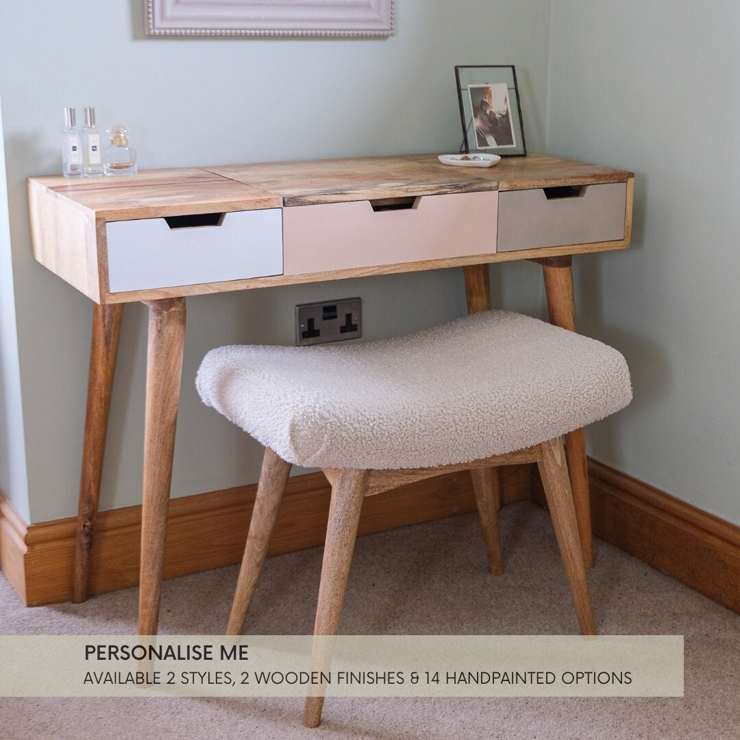Mango Wood Dressing Table & Boucle Bench | Scandinavian Modern ...