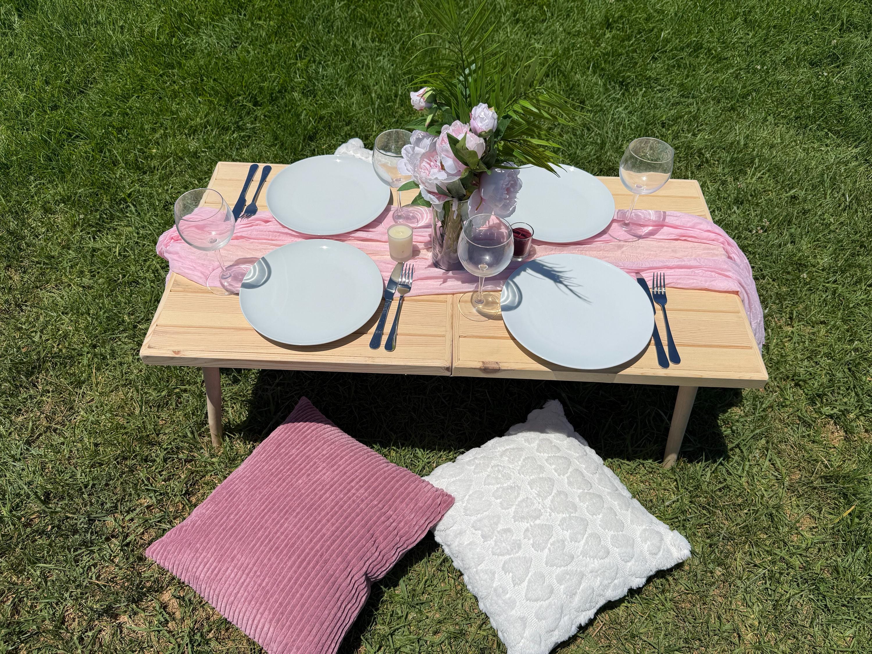 Foldable Boho Picnic Table, Handmade Rustic Wood Table for Camping,...