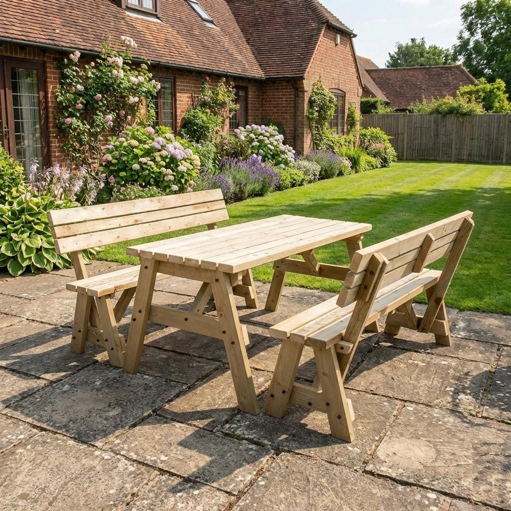 Solid Wood Garden Table with Back-Rest Benches - Victoria Range - H...