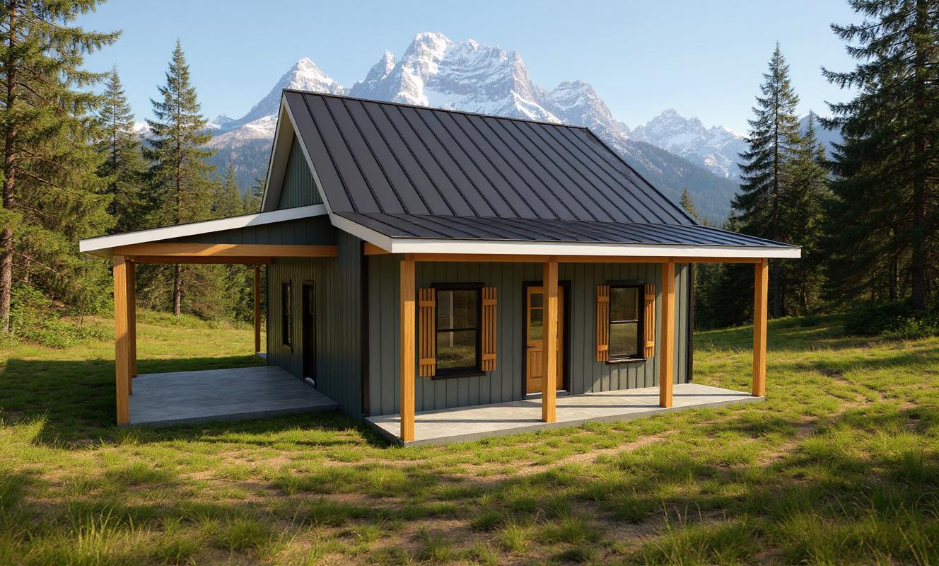 Modern Cabin Plan - 775 (living) Sqft -1bed-1 bath-Office-Car Port