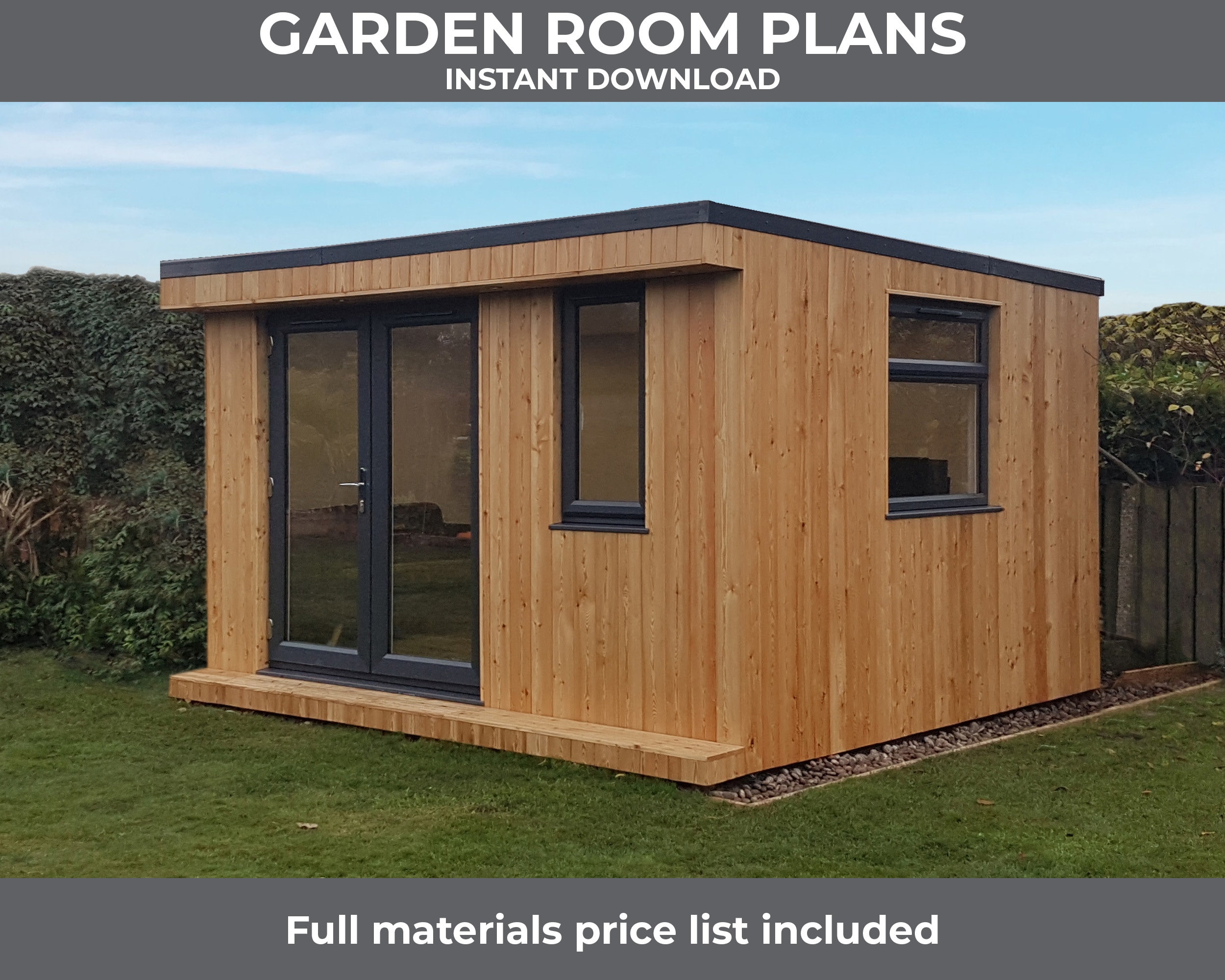 Garden Room Plans 4x3 metre with French doors and materials list. D...