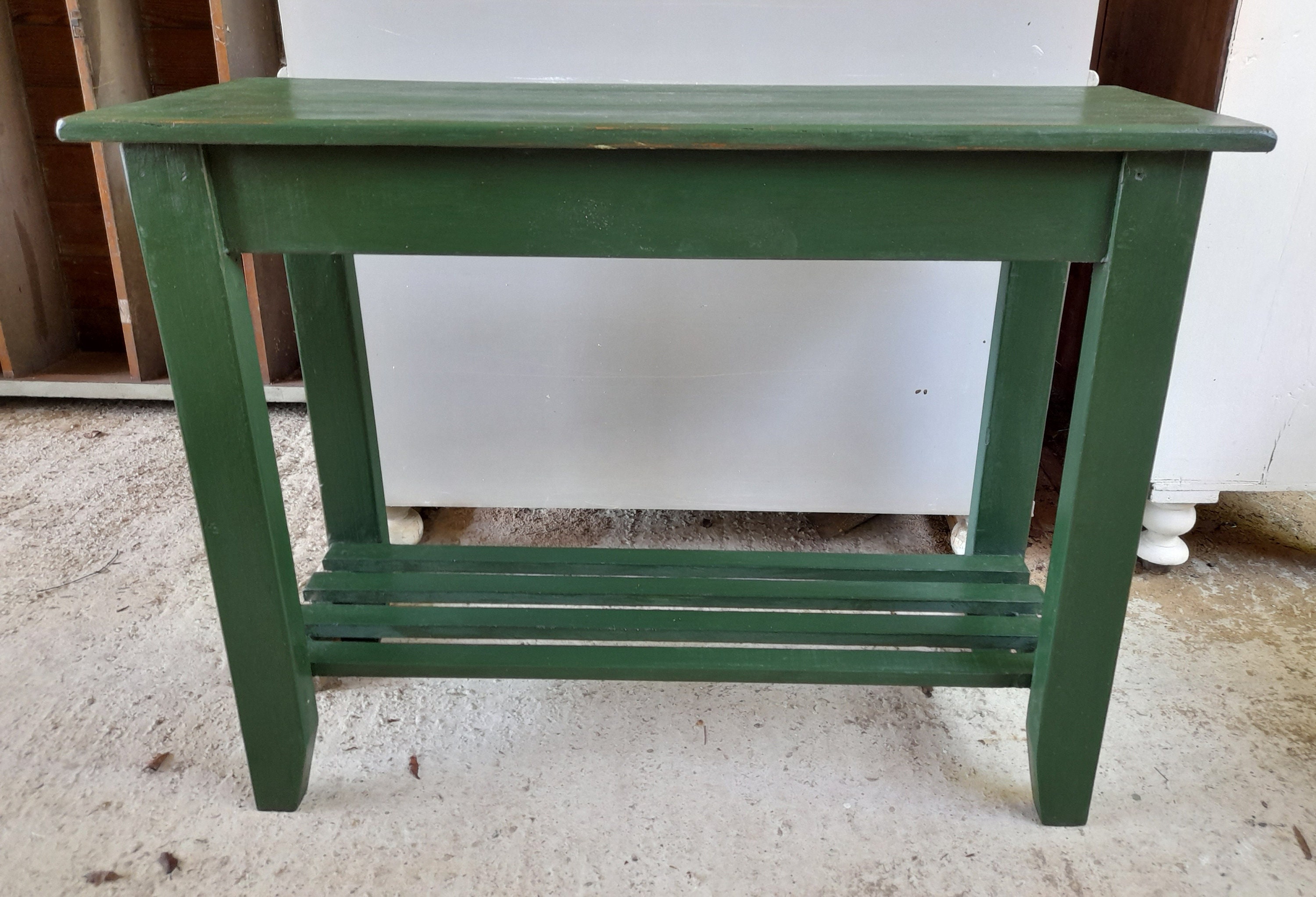 A very pretty old pine potting table, made from reclaimed timber. Painted in Farrow and Ball Beverle...
