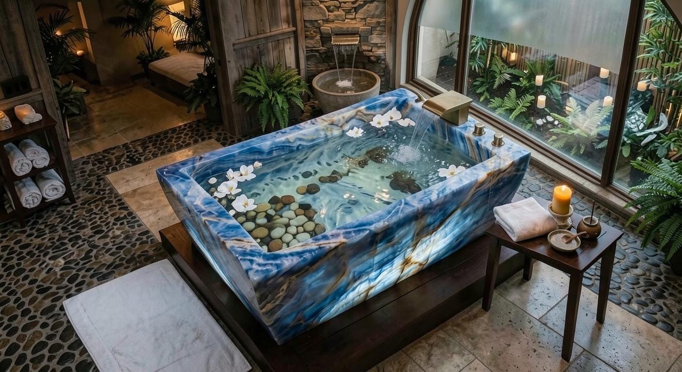 • Natural Blue Onyx Freestanding Bathtub - Handcrafted Spa-Style Soak...
