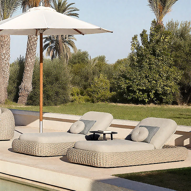 Pool Lounge Chair Sun Loungers Beds for Patio Rattan Outdoor Furniture Poolside Sunbed and Umbrella
