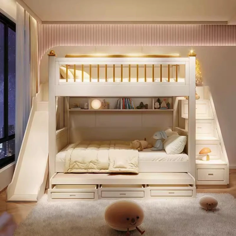 150x190cm king size frames mattress kids loft bed 2 people luxury 3 drawers bunk beds With slide lad...