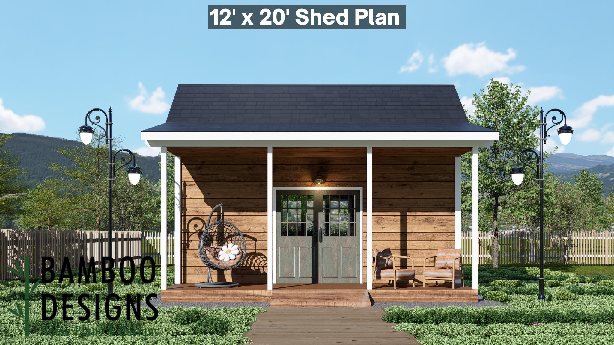 "Launch your next backyard upgrade with the Evazan Porch Shed Plan -- a spacious 12x20 cabin-in...