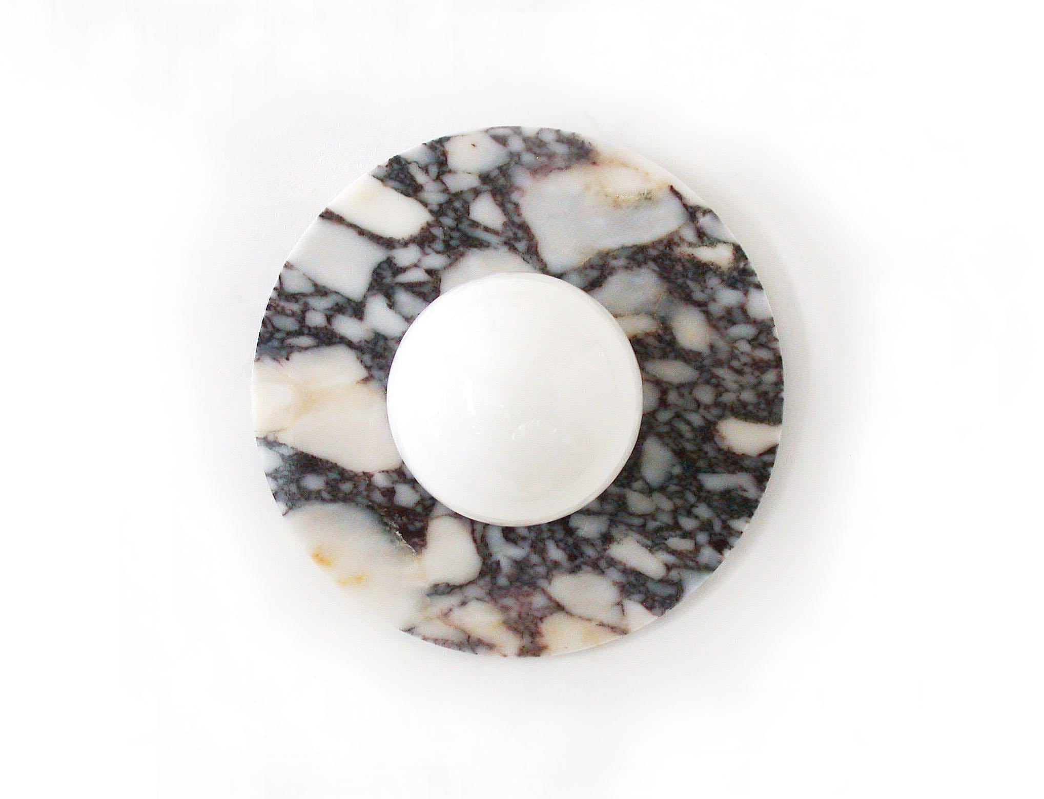 "This Large round Calacatta Viola marble minimalst wall sconce is a unique design piece handmad...