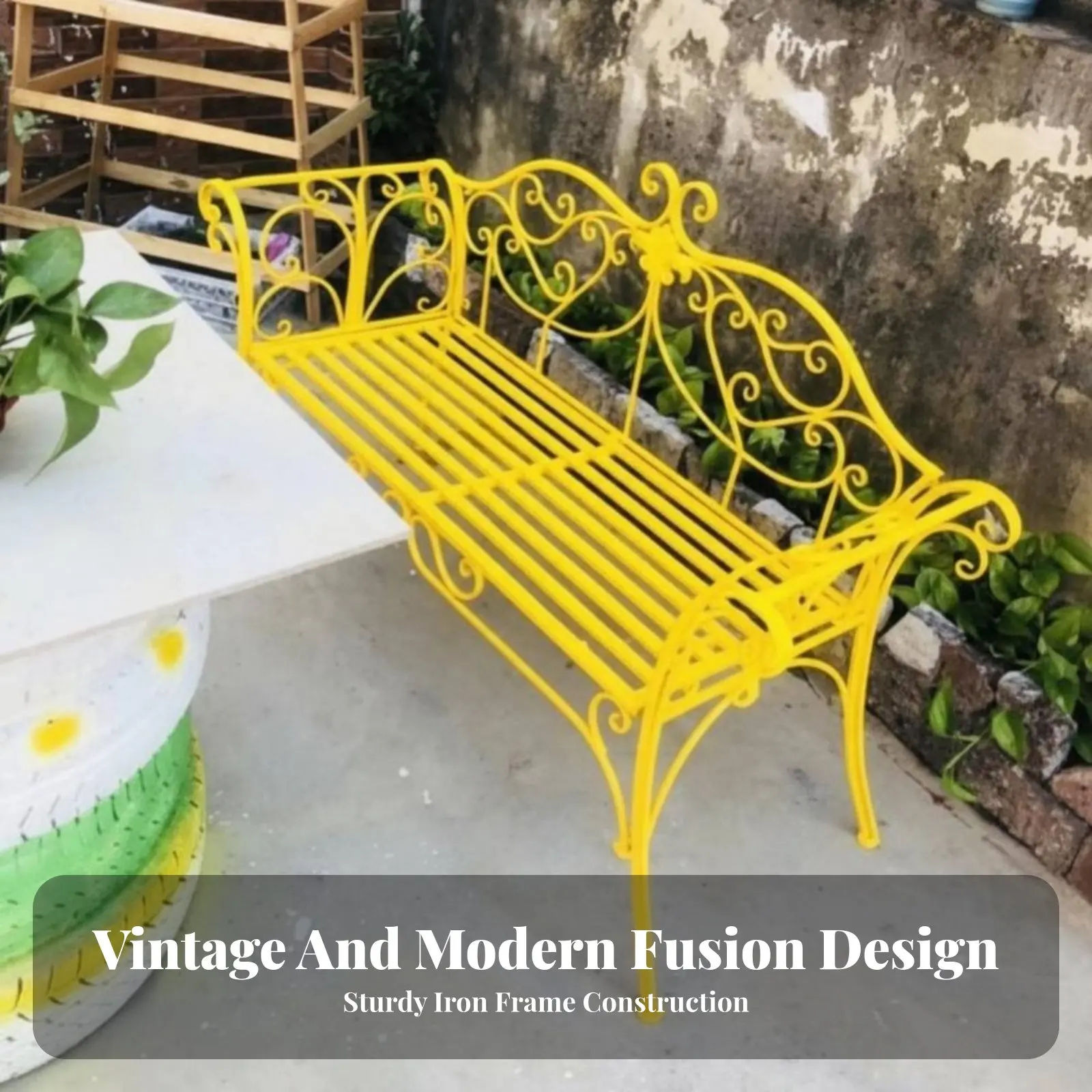 Ornate Metal Two-Seater European Influenced Design Garden Bench Elegant Scrollwork Weather-Withstand...