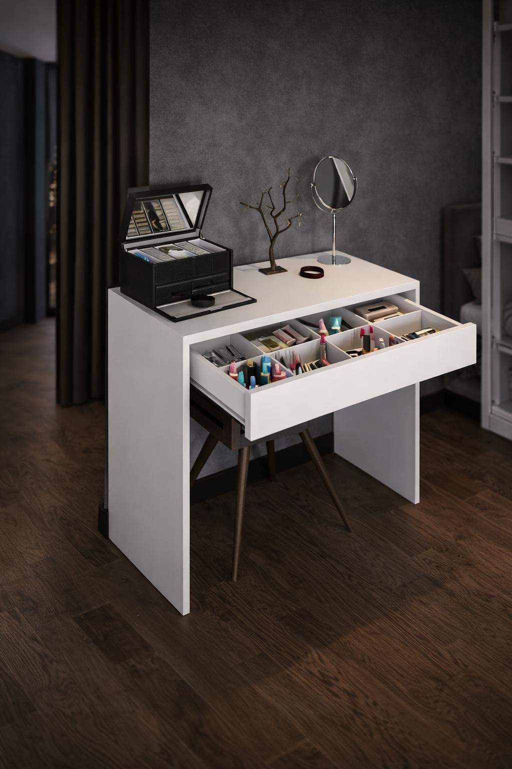 Modern Vanity Table with Drawer, Minimal Makeup vanity, Compact dre...