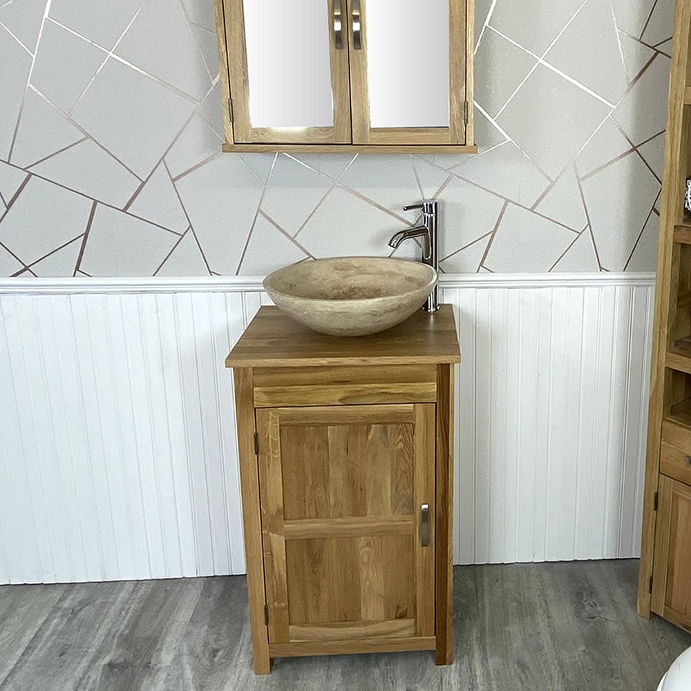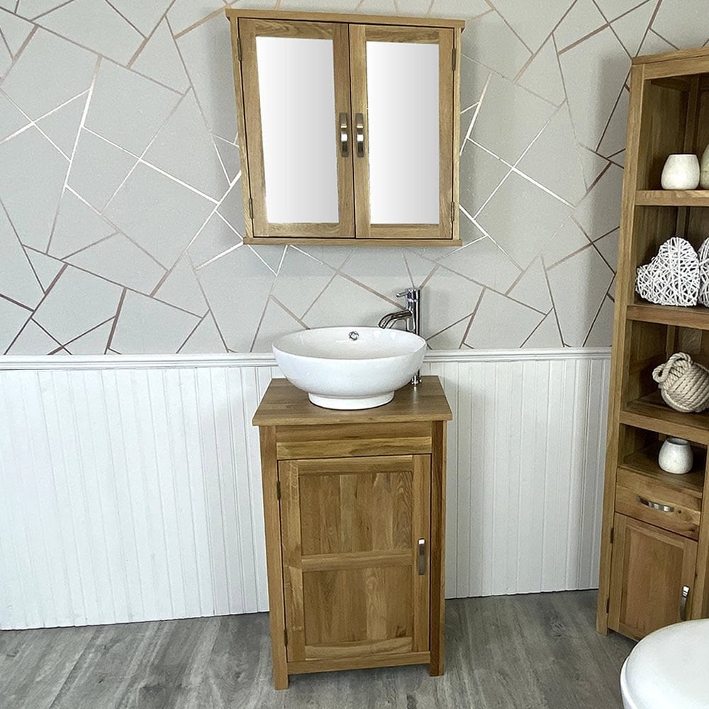 Small Compact Oak Bathroom Modern Vanity Cabinet and Ceramic Basin ...