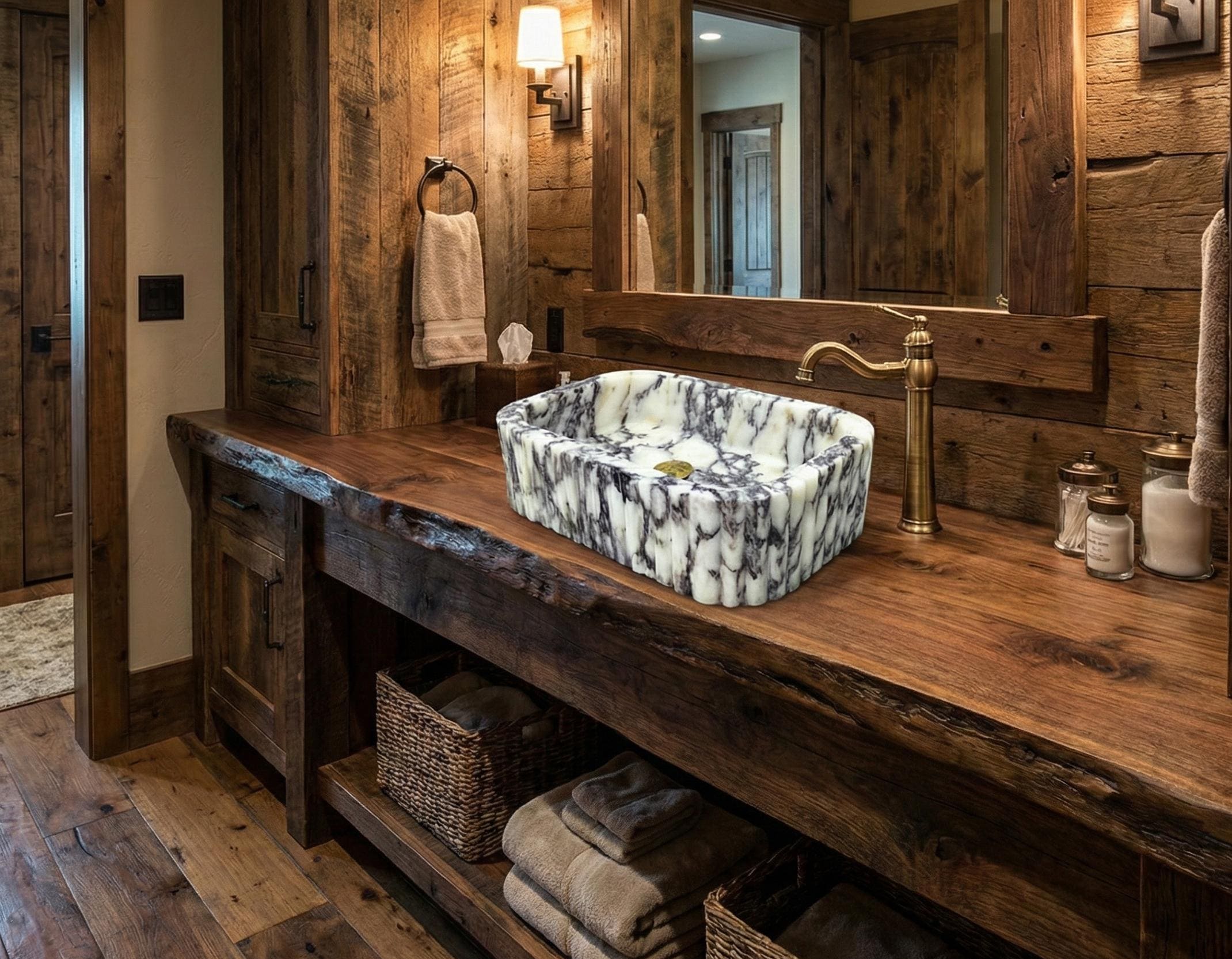 Calacatta Viola Marble Sink - Compact Fluted Stone Basin for Powder...