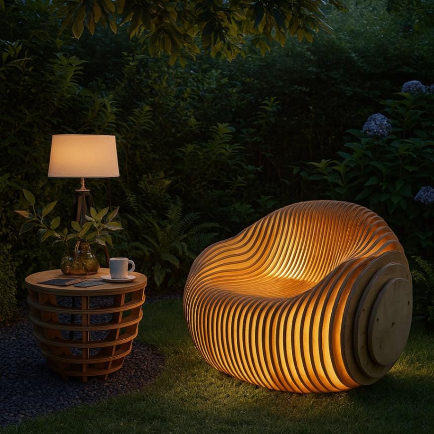 Parametric Wooden Chaise Lounge | Modern Design Accent Chair