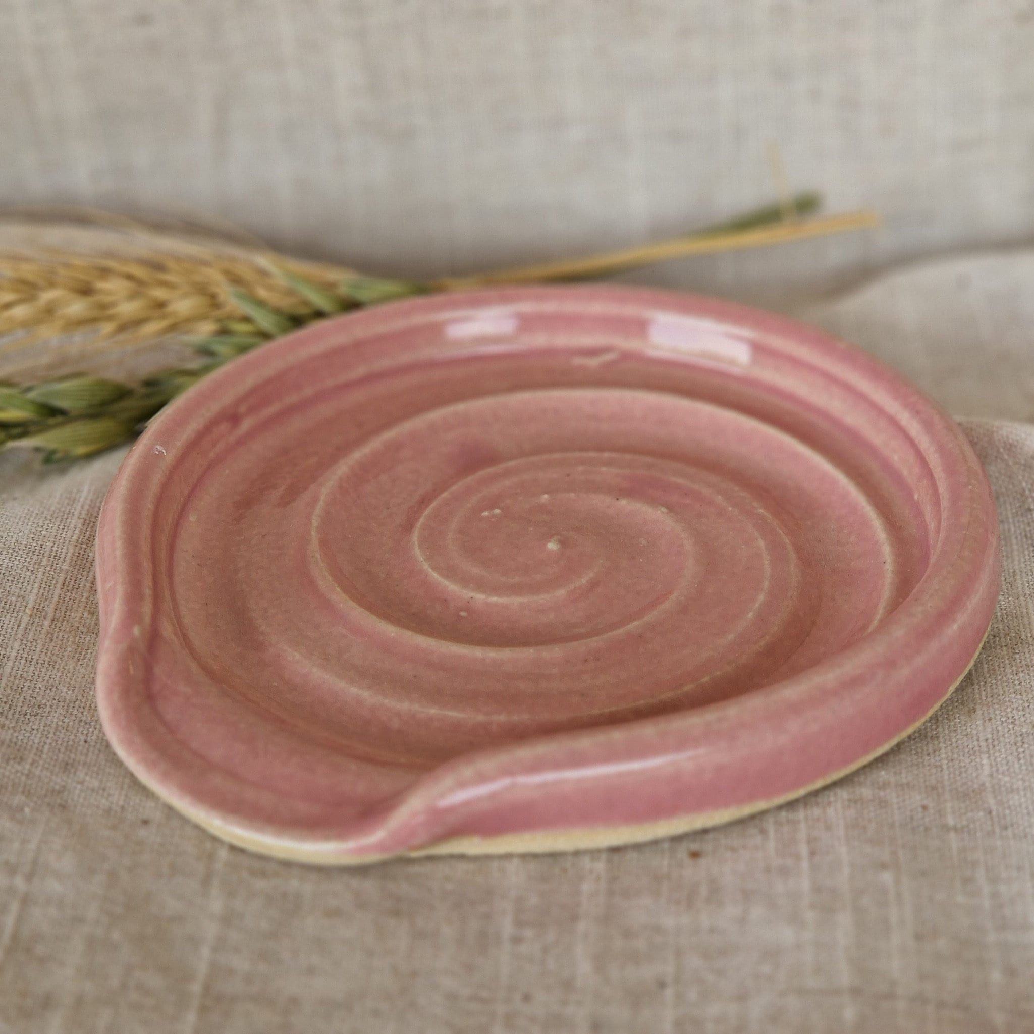 This listing is for a single, handmade ceramic spoon rest in our shiny pink glaze. Each piece is uni...