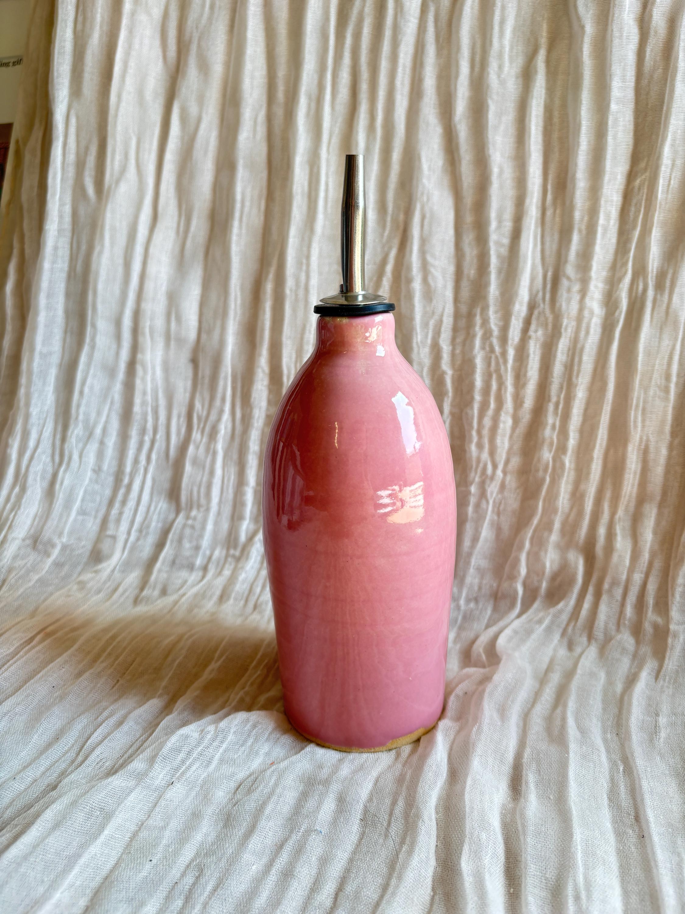Candy Floss Pink ceramic oil pourer, 350ml handmade bottle, oil dec...