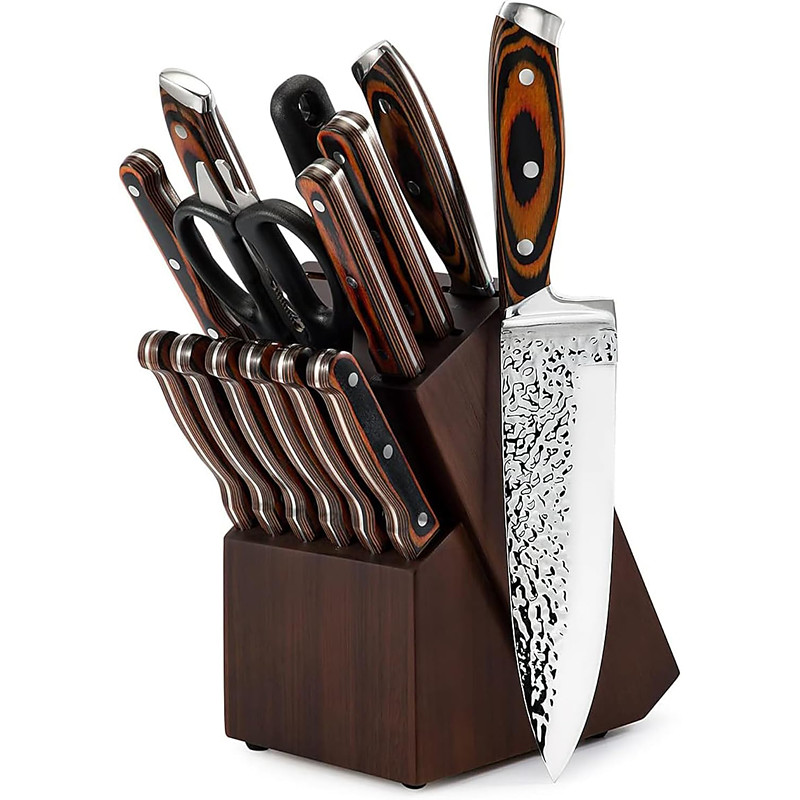 Knife Set15 Pieces Kitchen Knife Set with Wooden BlockHigh Carbon J...