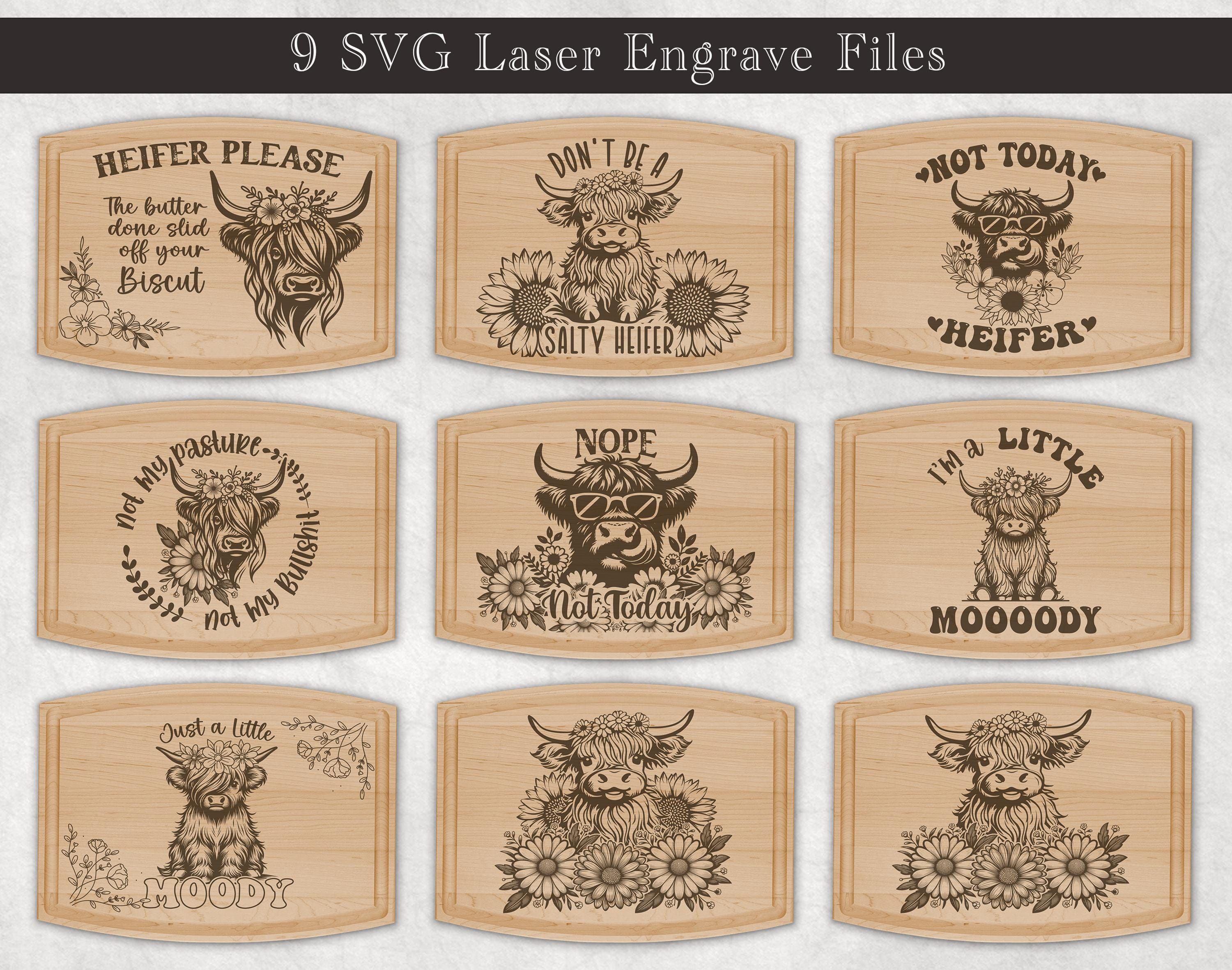 Highland Baby Cow Cutting Board Laser Engraved File Design, Charcut...
