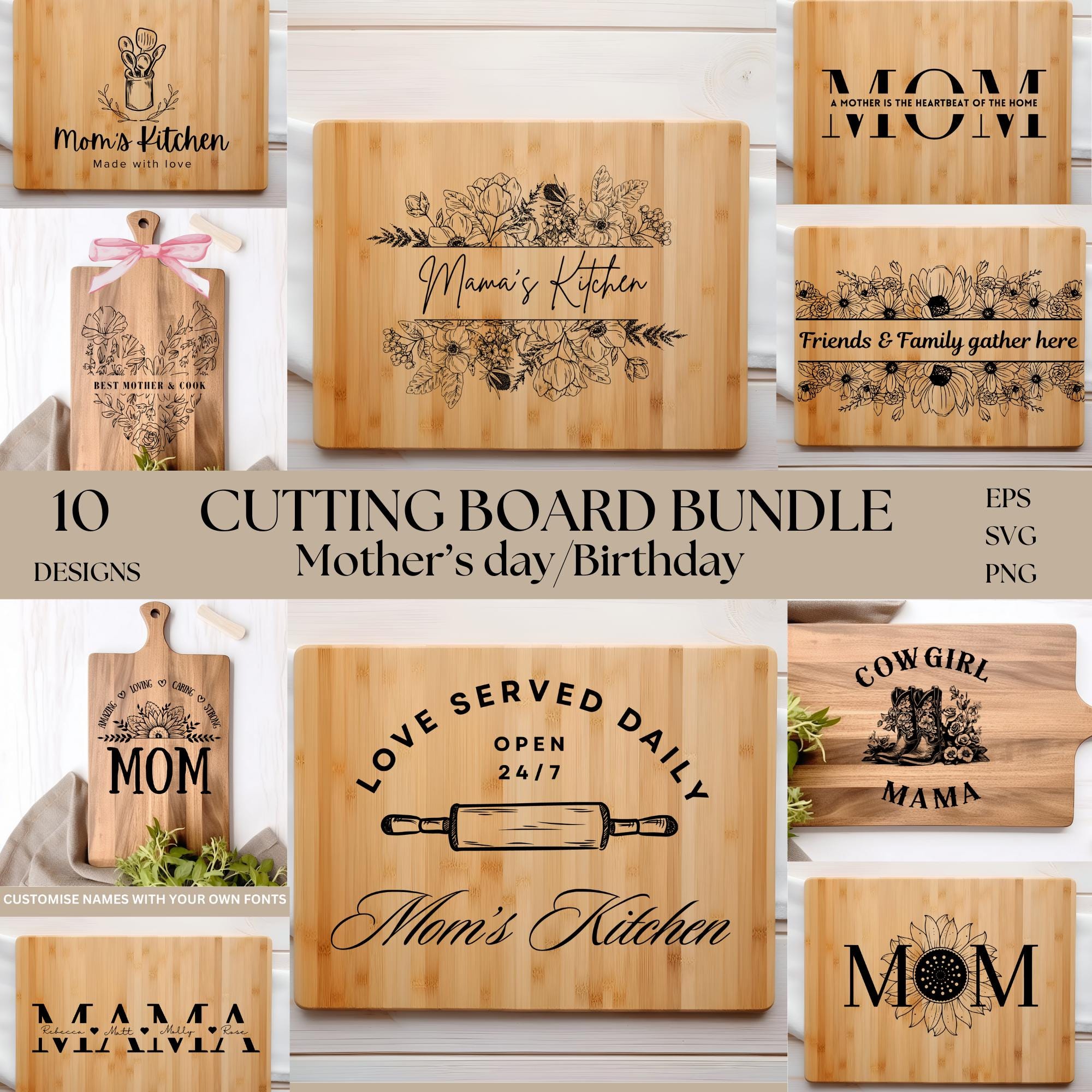 Mothers Day Cutting Board SVG, Laser Cut, Cutting Board Svg File, C...