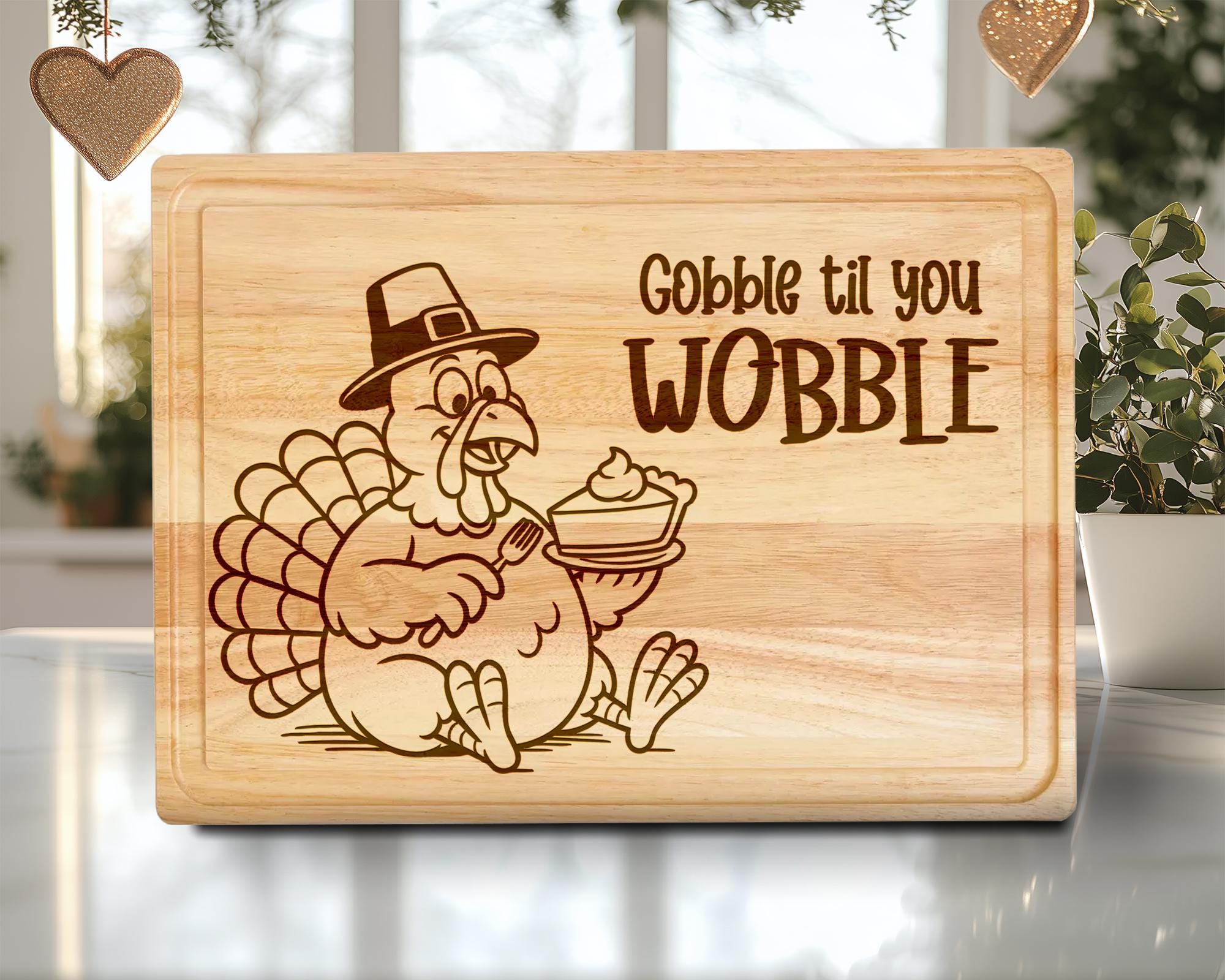 Thanksgiving Turkey Cutting Board Laser Engraved File Design, Charc...
