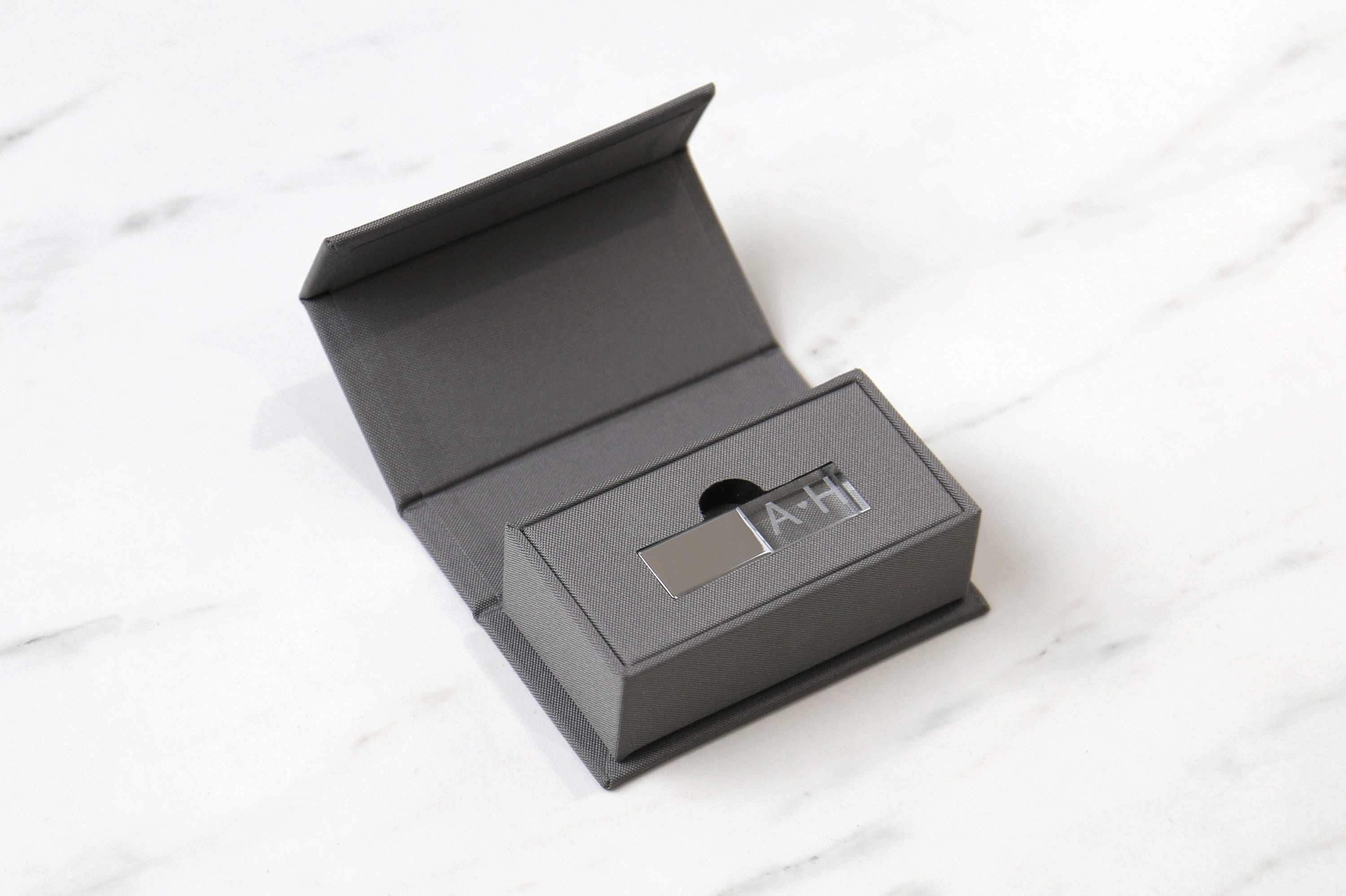 Slate Gray Fabric USB Box with Magnetic Closure + Crystal USB | Wed...