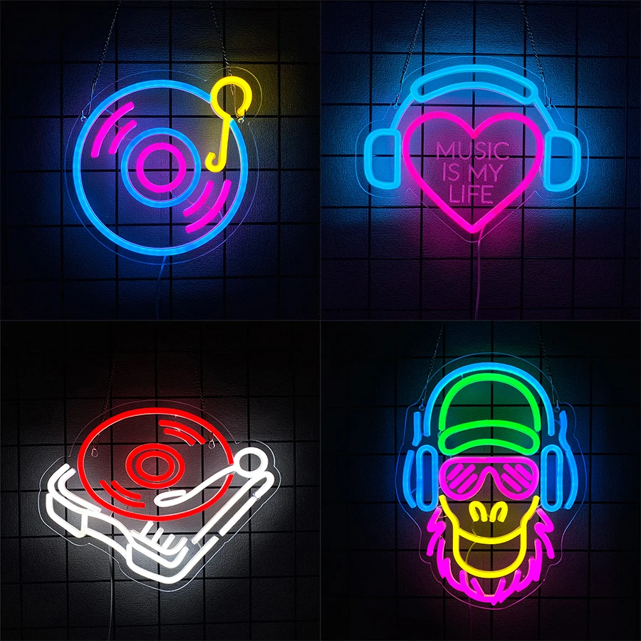 Music Series Neon Sign, Record Player Art Icon, Powered By Usb, Use...