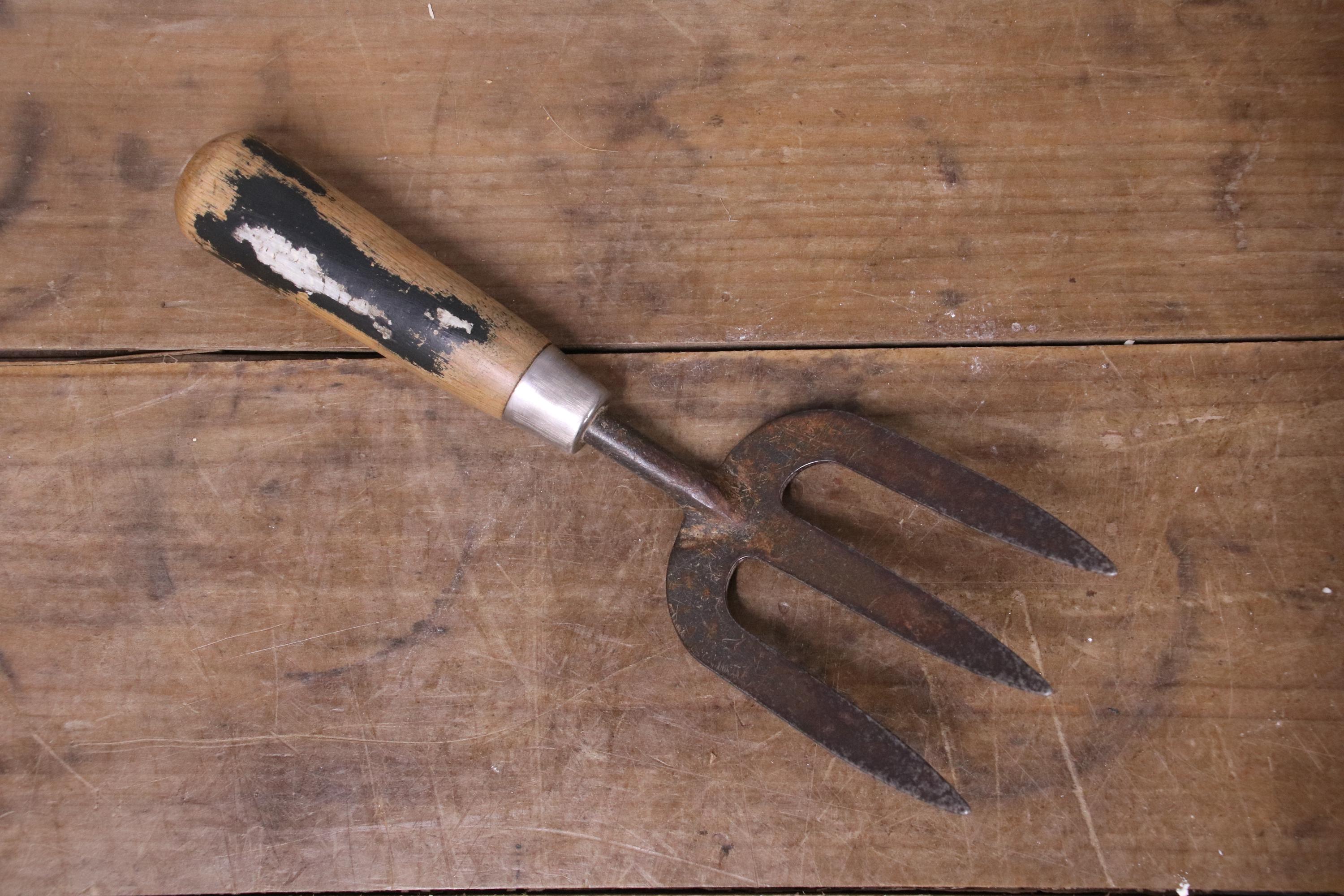 Vintage Old Black Hand Fork. Garden Tool. Potting Shed Decor. #23