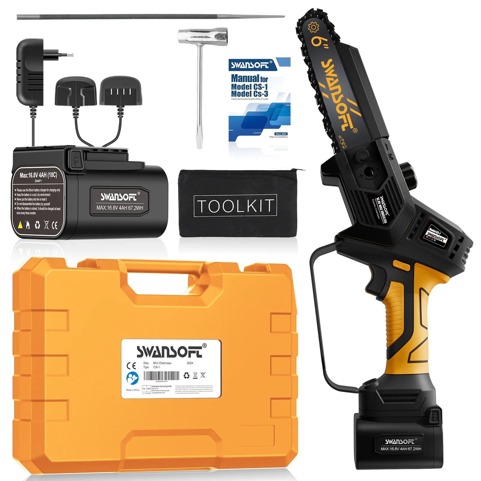 Swansoft Electric Chainsaw Battery Powered Pruning Pole Saw Mini Co...