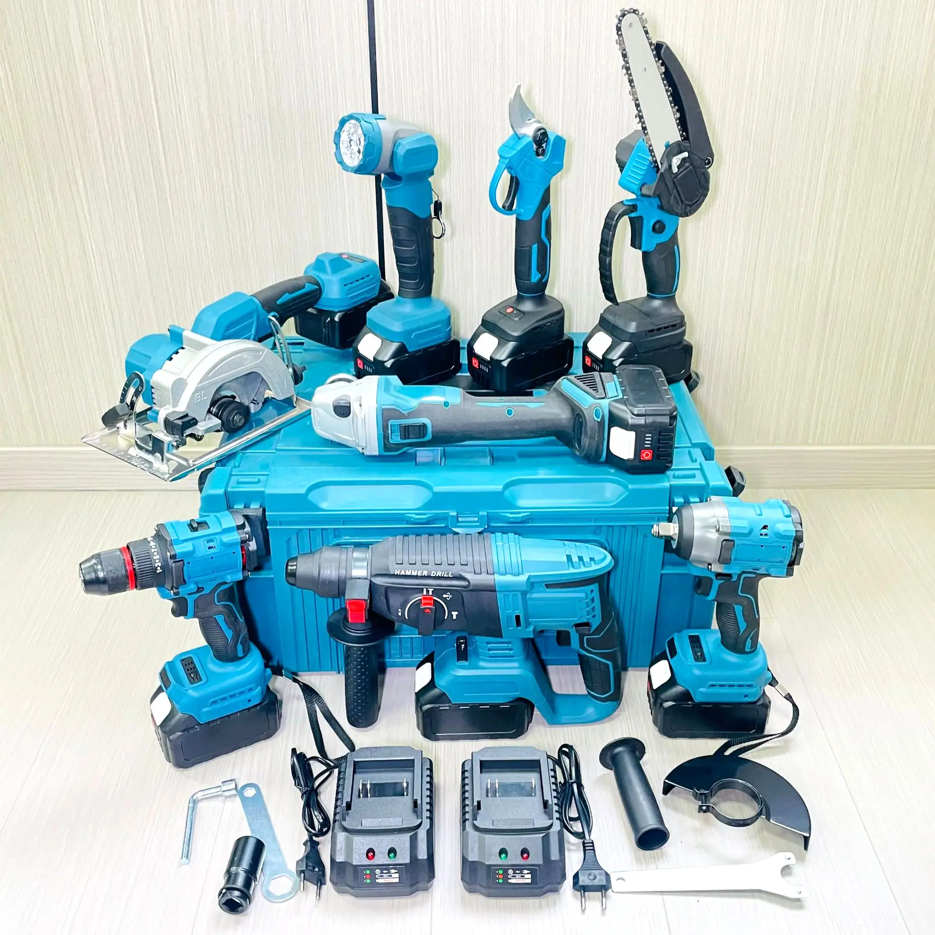 8pcs Battery Power Tool Kits Electric Hammer Drill Brushless Angle ...