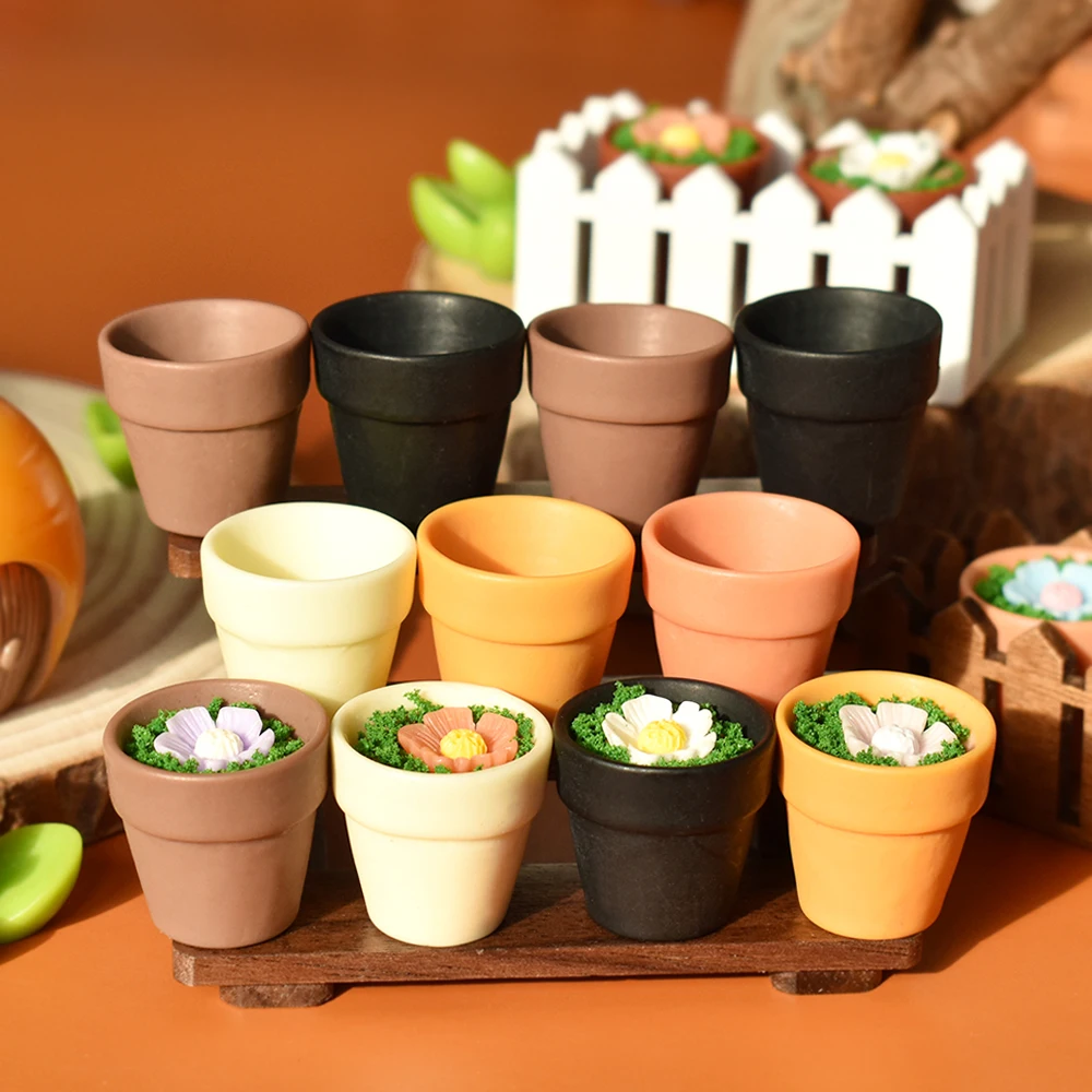 Miniature Terracotta Flower Pot Resin Charms for DIY Doll House Sho...