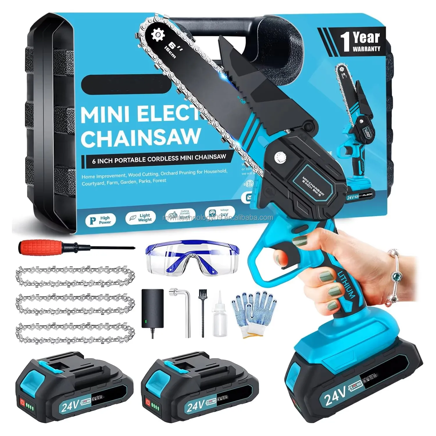 6 Inch Cordless Battery Powered Mini Chainsaw Industrial/DIY Electr...