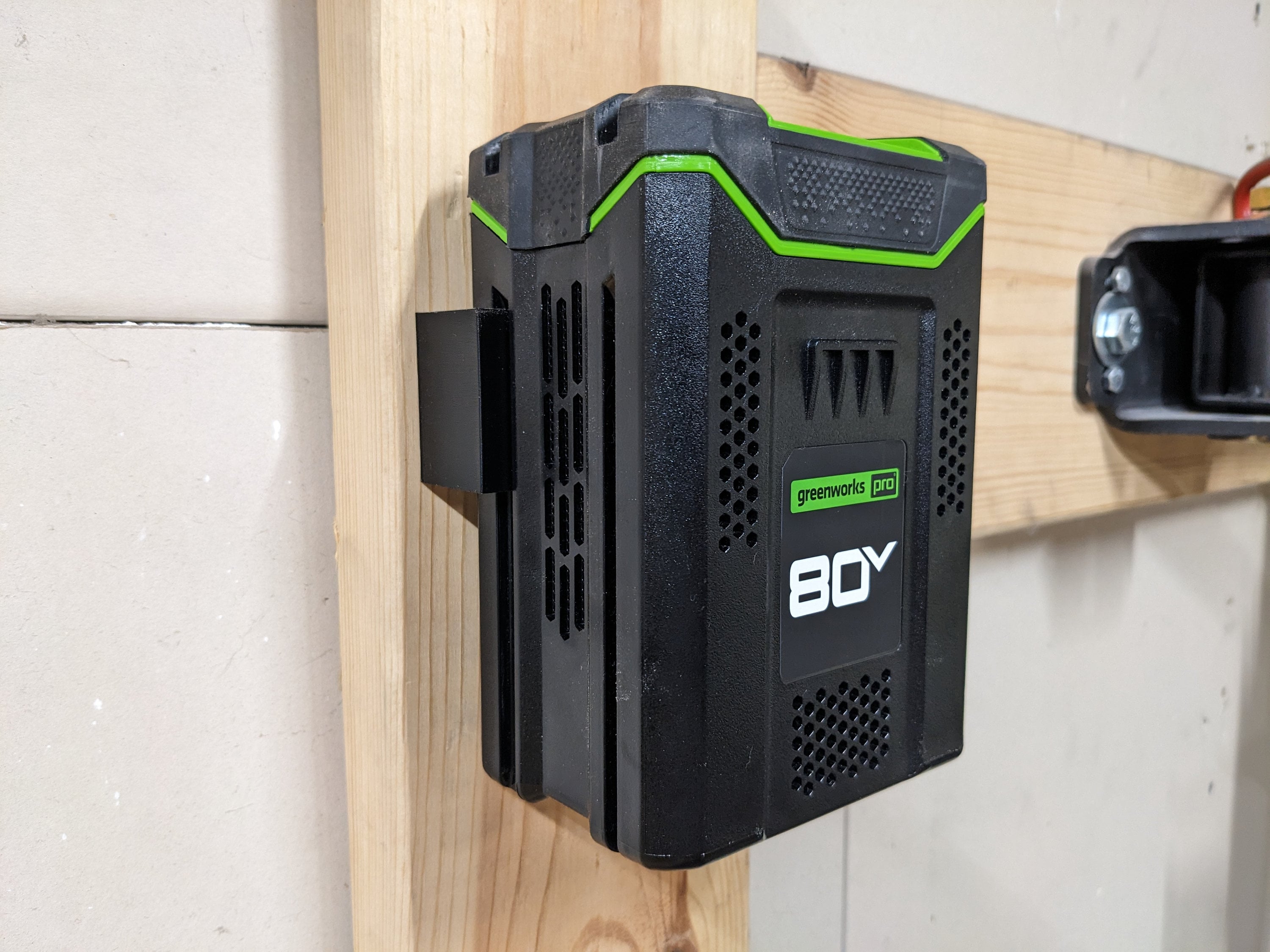This listing is for a Wall mounting solution for Greenworks Pro 80v Batteries, available with bulk d...