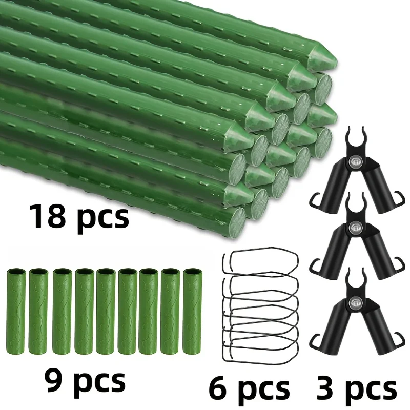36-Piece Durable Garden Support Pile Set - Pet Coated Metal Core, Including 18 Support Rods, 3 A-Sha...