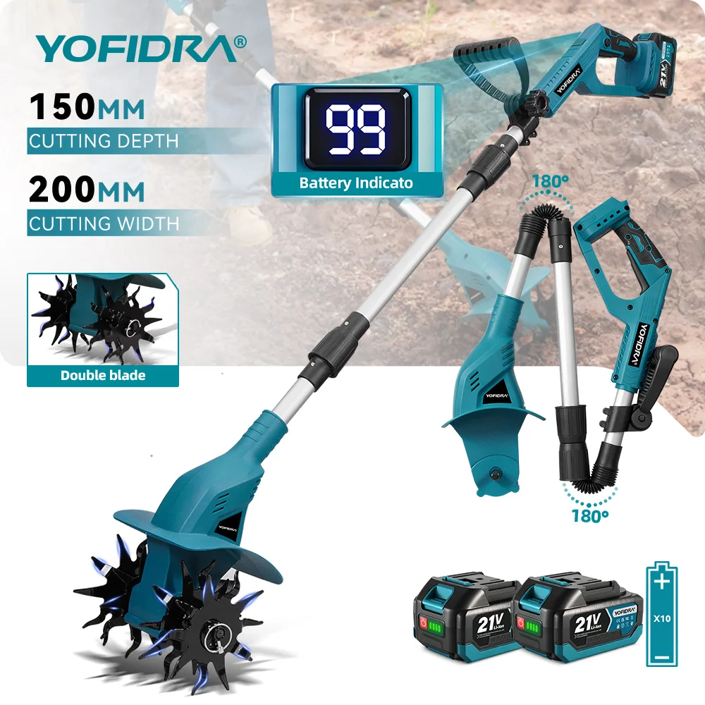 YOFIDRA Electric Garden Tiller Rototiller Cultivator Multi-purpose Cordless Scarifier Garden Tool Fo...
