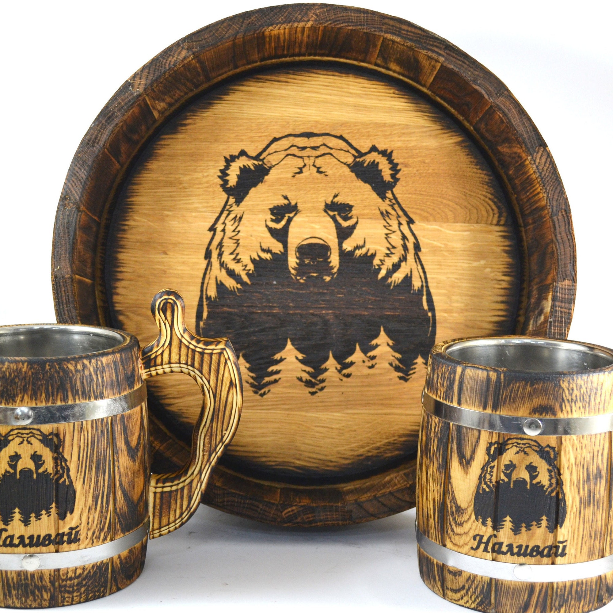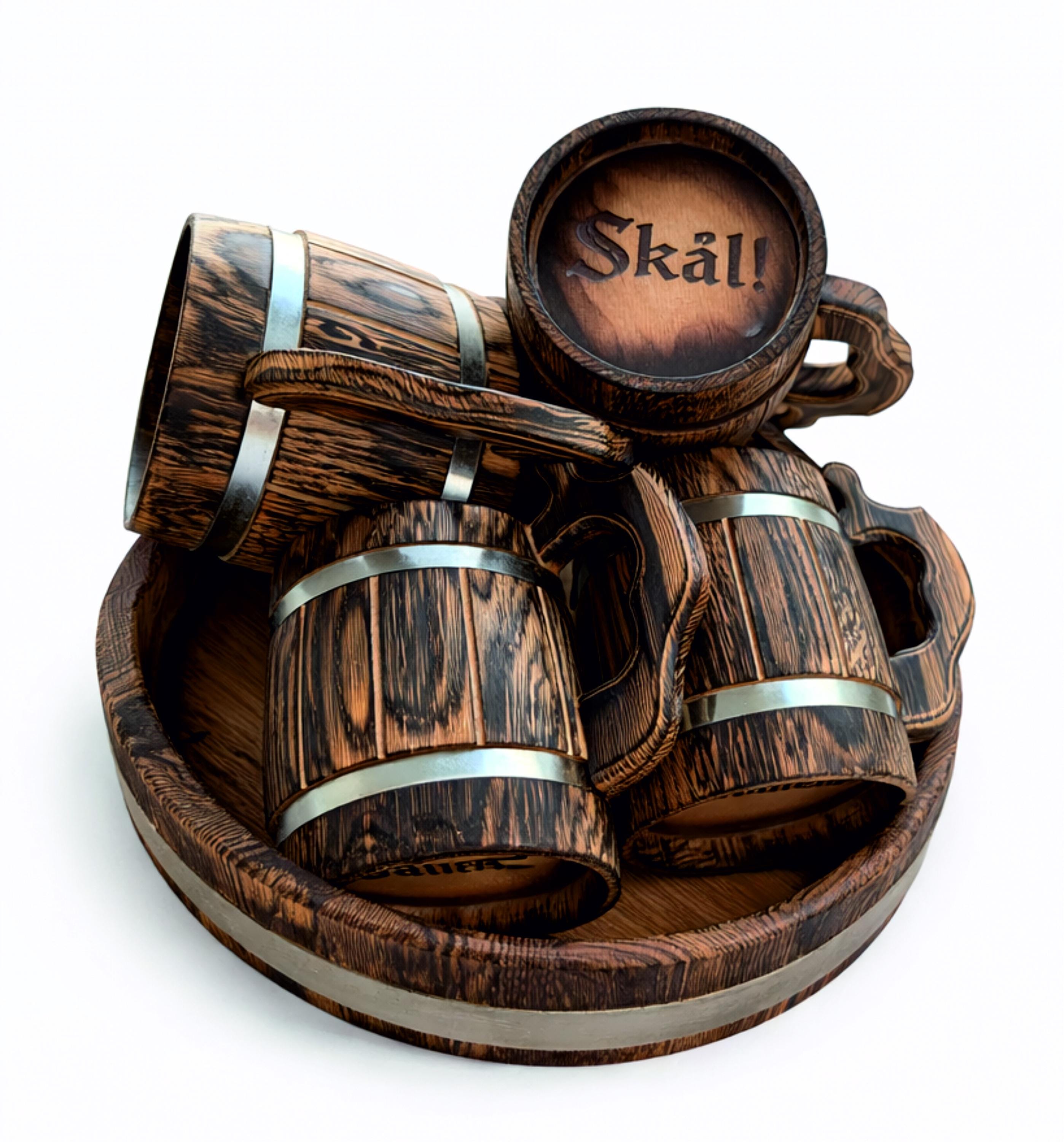 Custom Wooden Beer Mug Set with Tray, Viking Tankard Set, Personali...