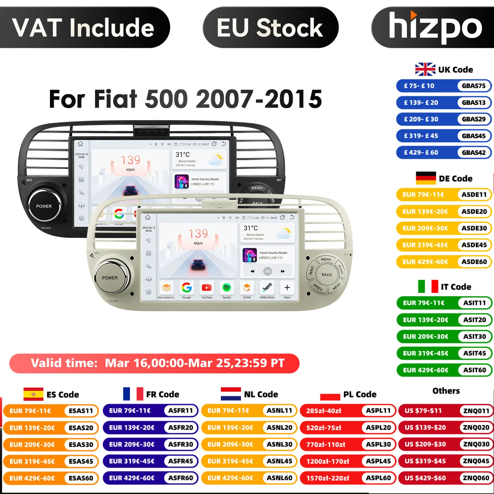 6.86inch Car Stereo Radio GPS Navigation for Fiat 500 2007-2015 Android 15 with Carplay Android-auto...
