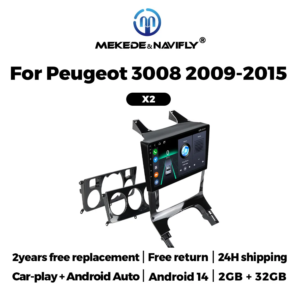 For Apple Wireless CarPlay Android 14 Auto Multimedia Player GPS Navigation IPS Touchscreen For Peug...