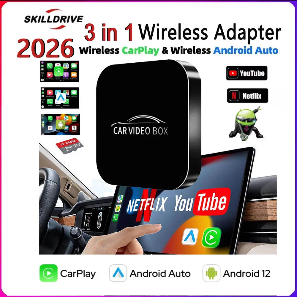SKILLDRIVE 2026 3in1 Wireless CarPlay Ai Box Android Auto Convertio...