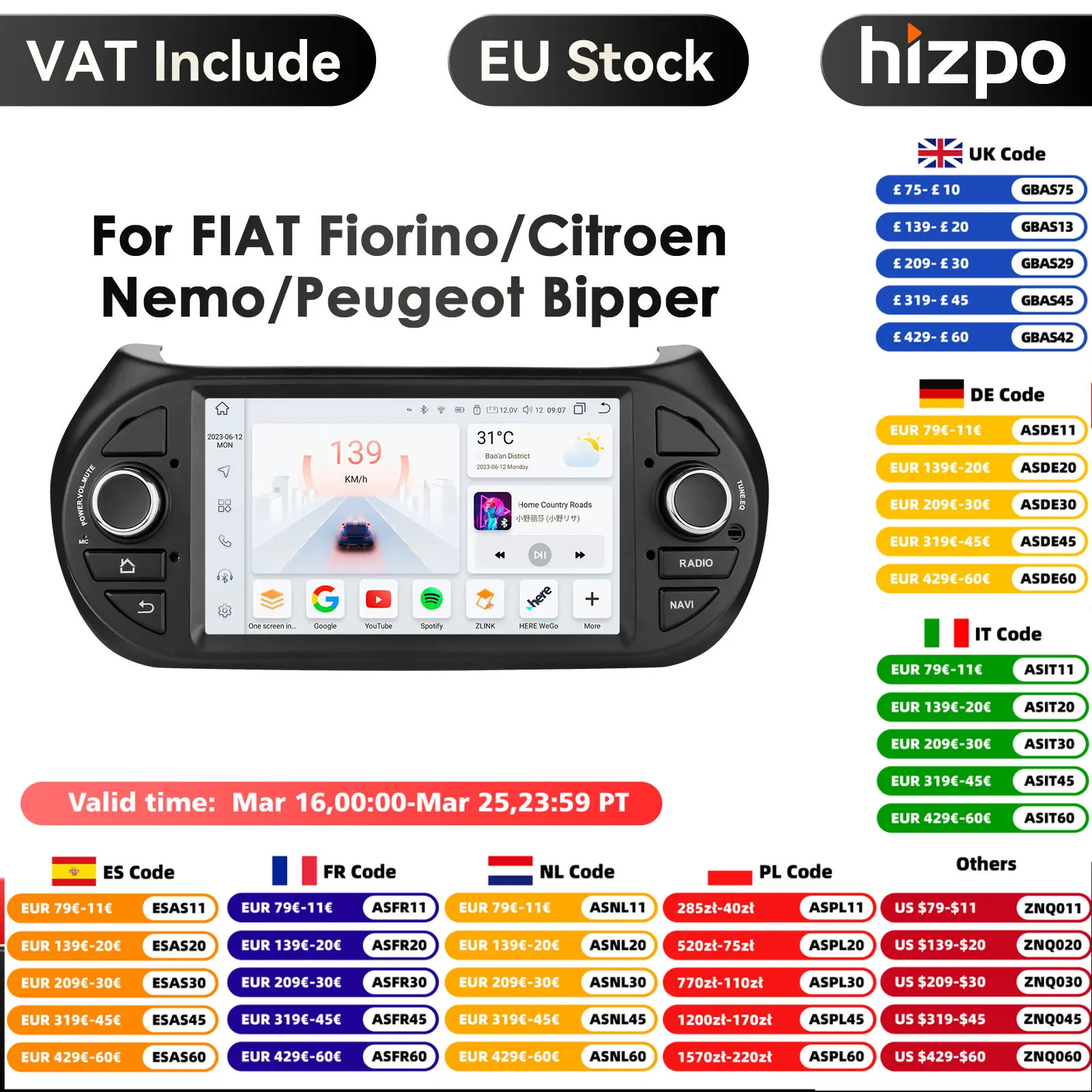 Android 16 Auto Car Radio Multimedia Video Player CarPlay For Fiat Fiorino Qubo Citroen Nemo Peugeot...