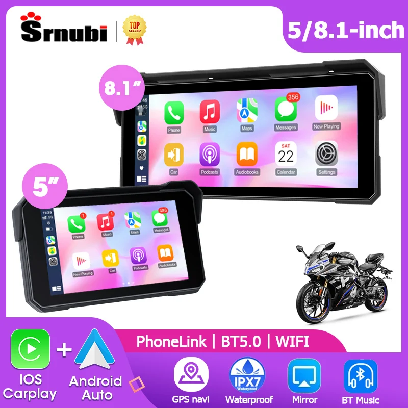 Srnubi 5/8.1'' Motorcycle Screen GPS Navigator Wireless Carplay And...