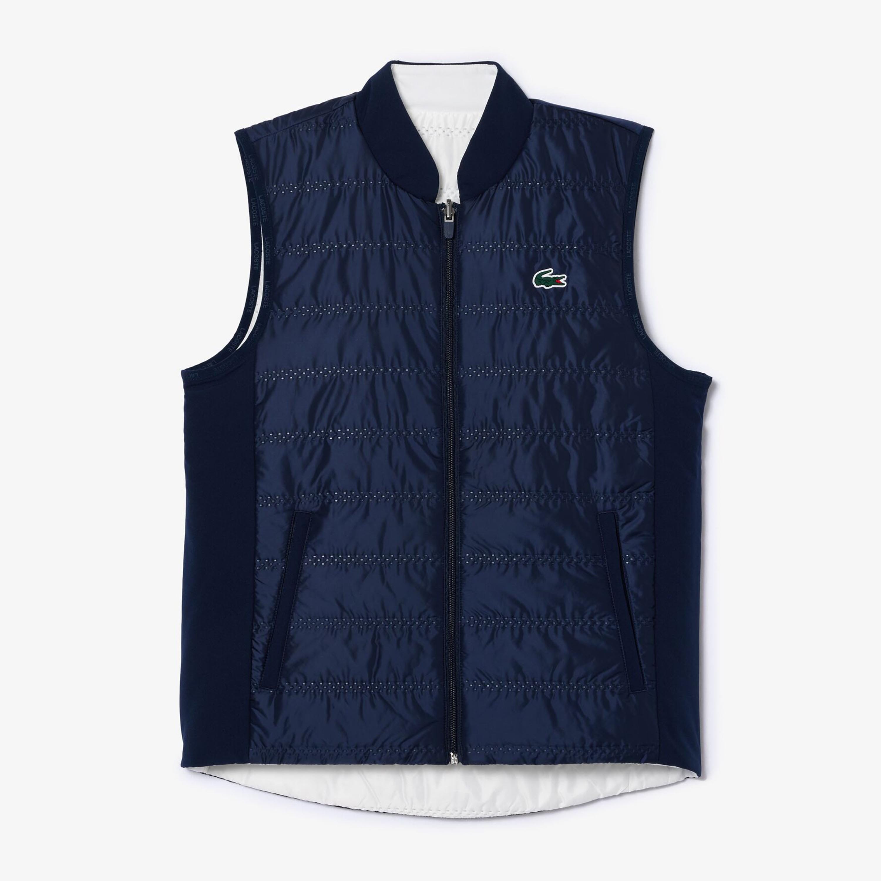 Womens Lacoste Golf Gilet in navy.- Quilted effect on front.- Reversible with pockets and side split...